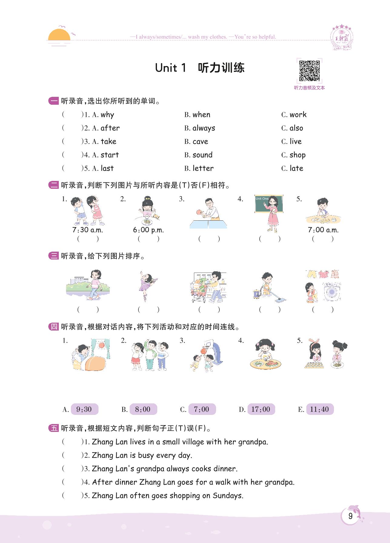 2022下册五年级英语人教PEP版 Unit 1 听力训练_R220221141101344
