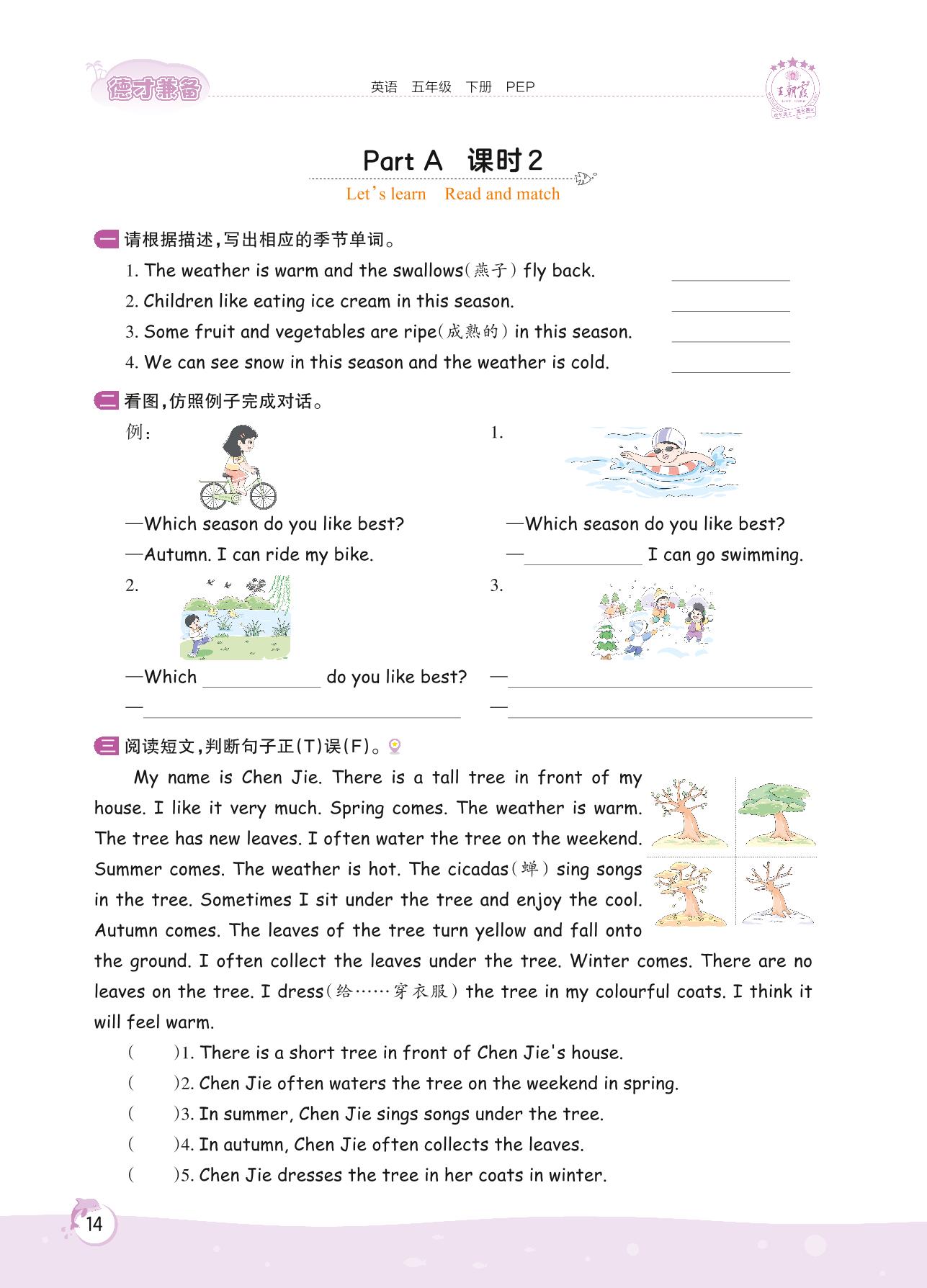 2022下册五年级英语人教PEP版 Unit 2 Part A—课时 2 Let’s learn Read and match