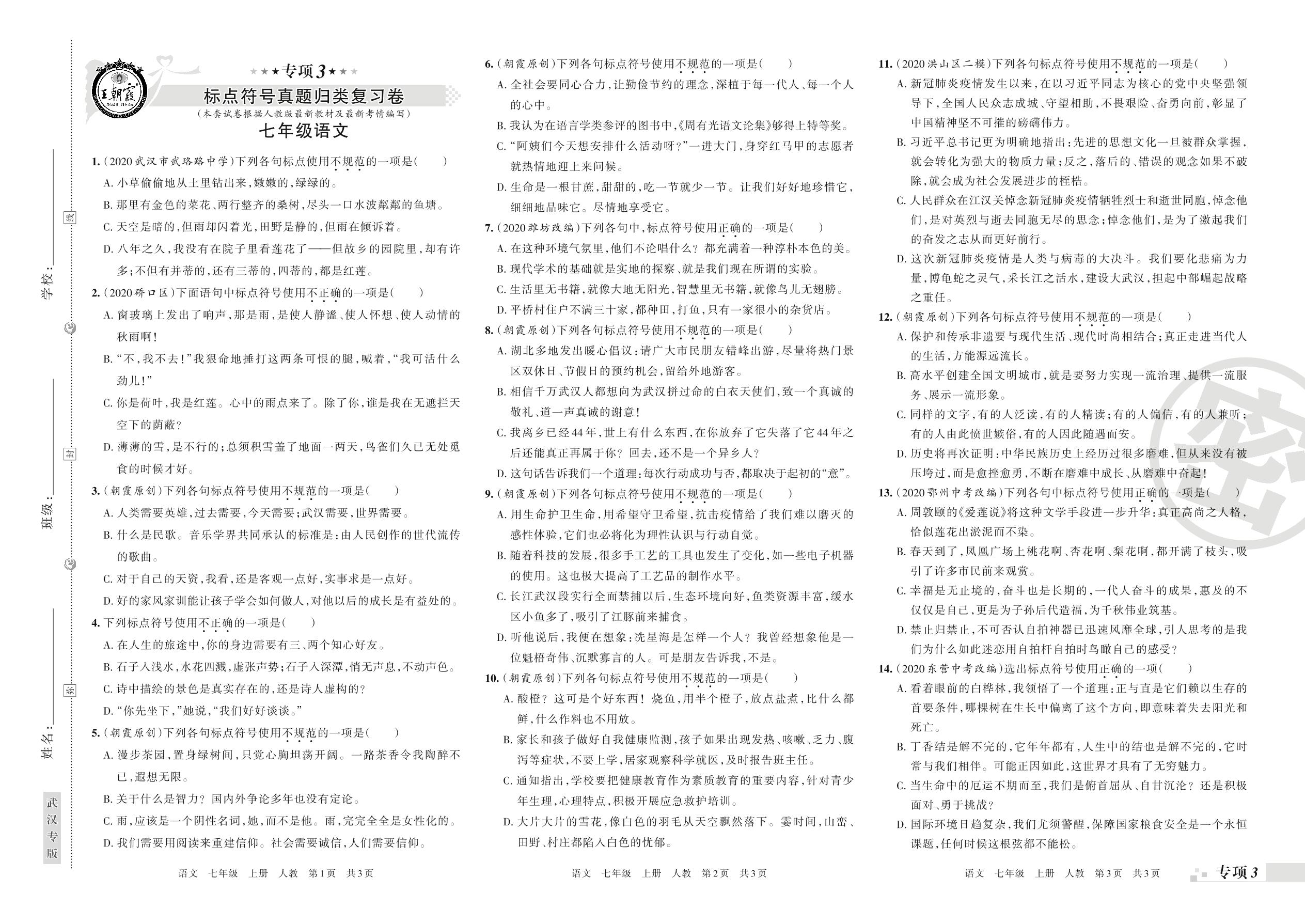 王朝霞期末专项卷——标点符号、综合性学习与口语交际真题归类复习七年级上册语文(人教版)