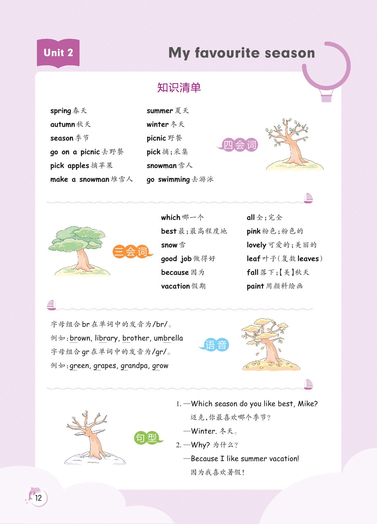 2022下册五年级英语人教PEP版 Unit 2 知识清单