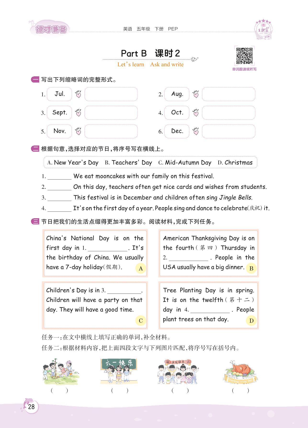 2022下册五年级英语人教PEP版 Unit 3 Part B—课时 2 Let’s learn Ask and write