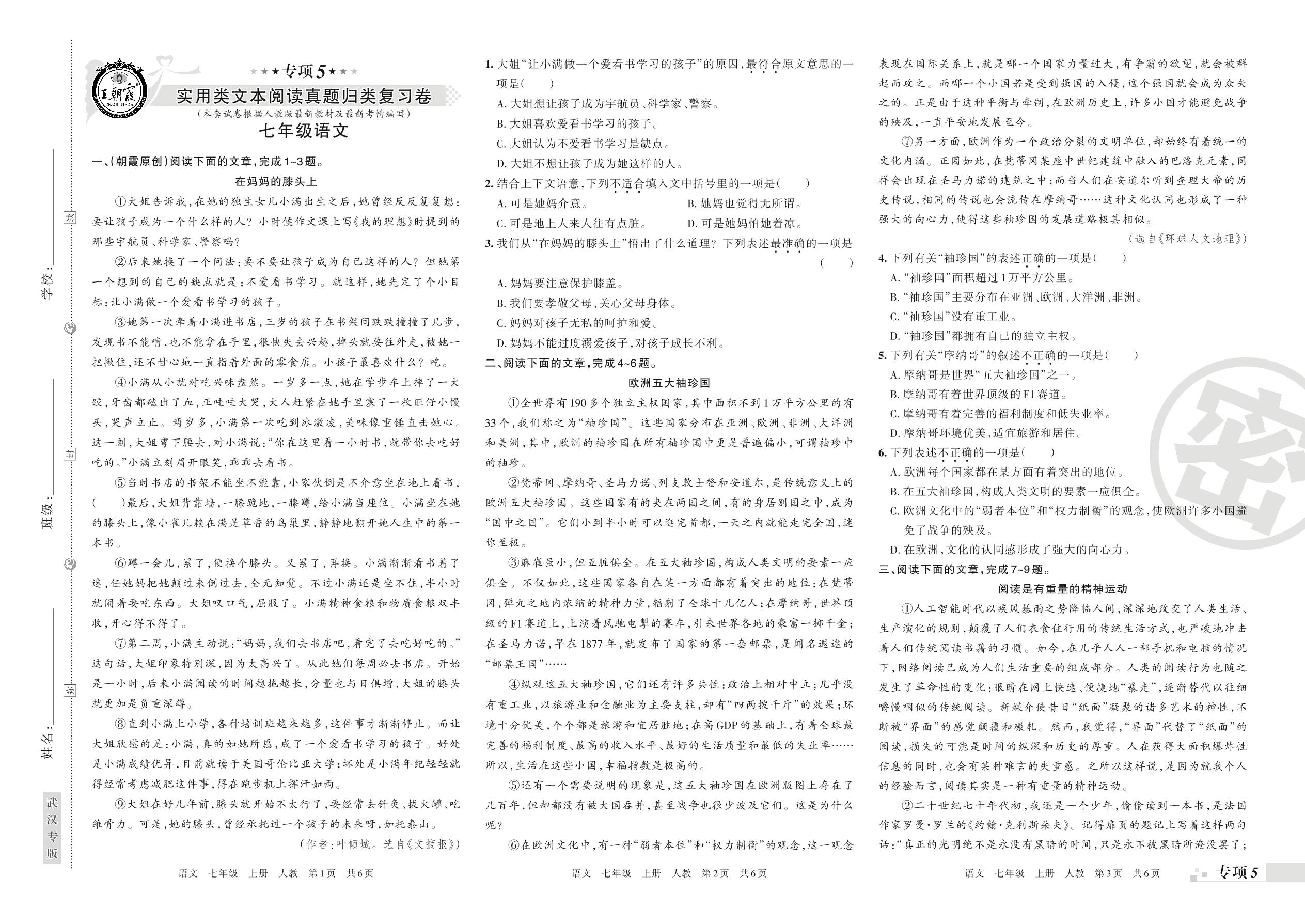 七年级语文人教版上册专项卷