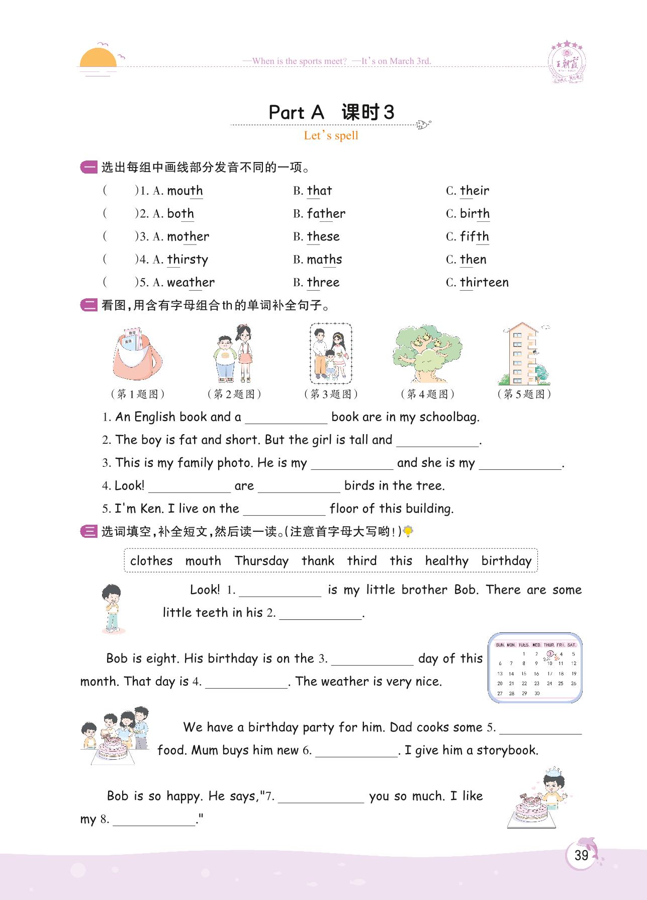 2022下册五年级英语人教PEP版 Unit 4 Part A—课时 3 Let’s spell