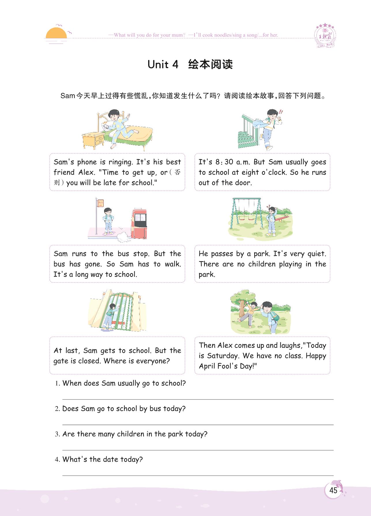2022下册五年级英语人教PEP版 Unit 4 绘本阅读