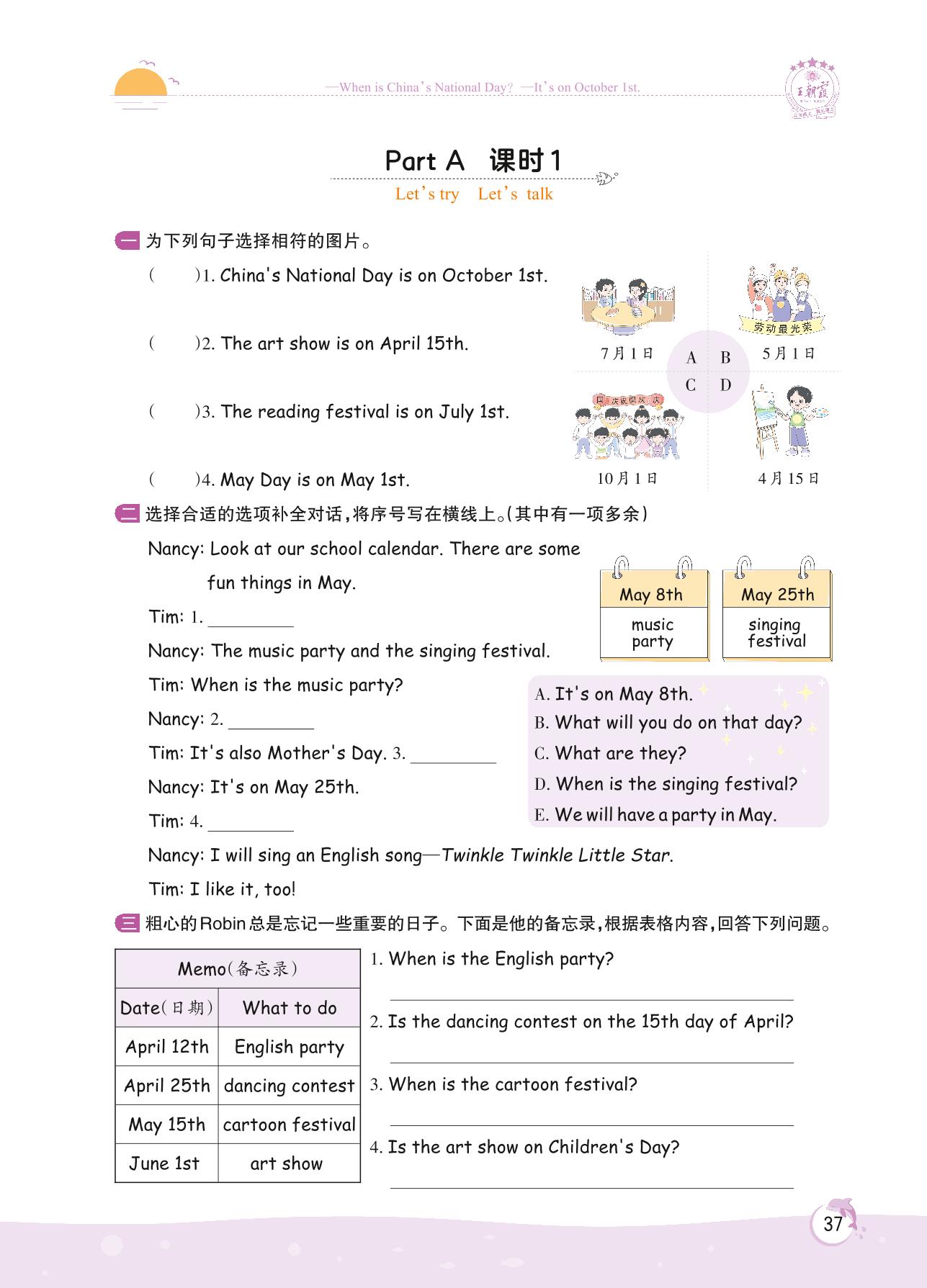 2022下册五年级英语人教PEP版 Unit 4 Part A—课时 1 Let’s try Let’s talk