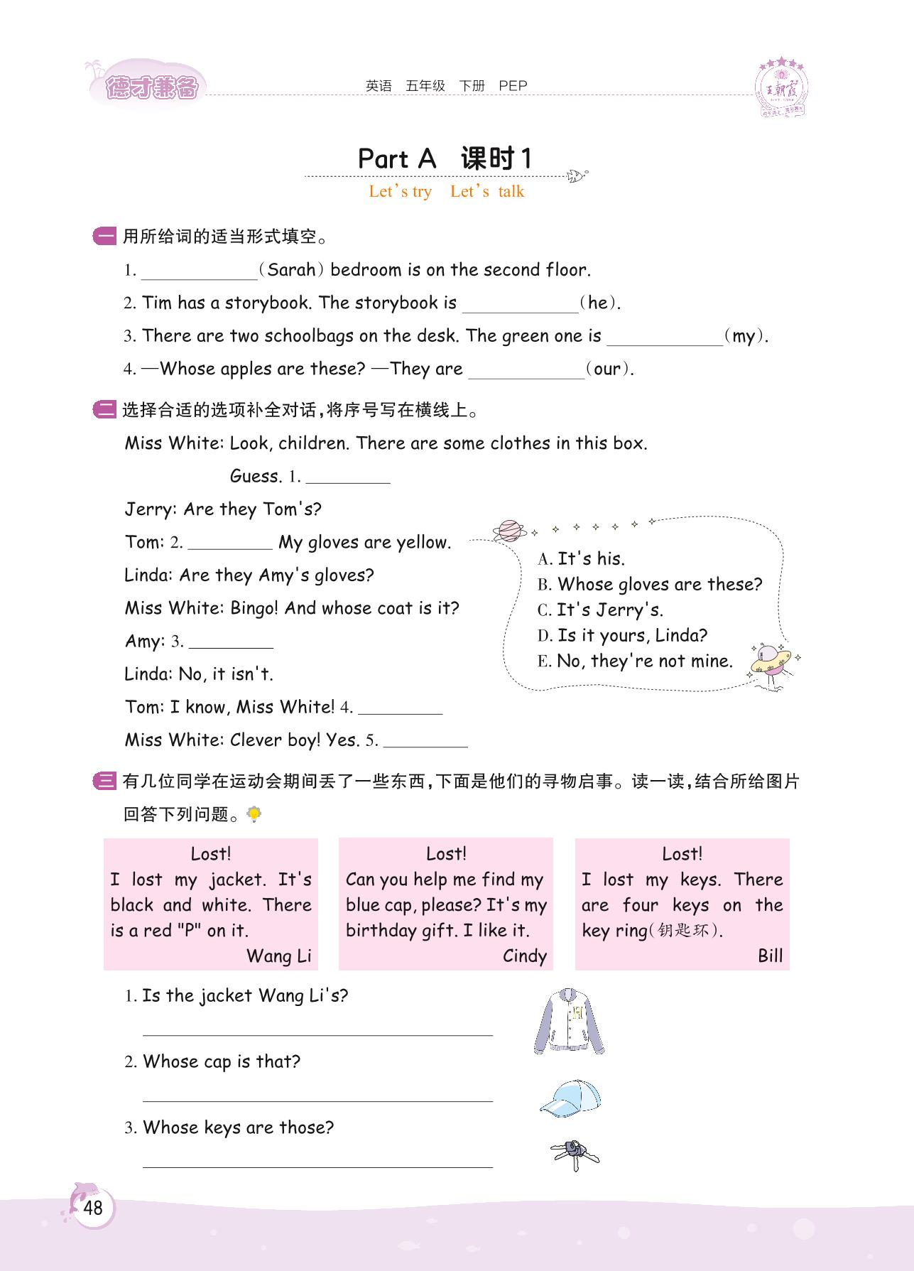 2022下册五年级英语人教PEP版 Unit 5 Part A—课时 1 Let’s try Let’s talk