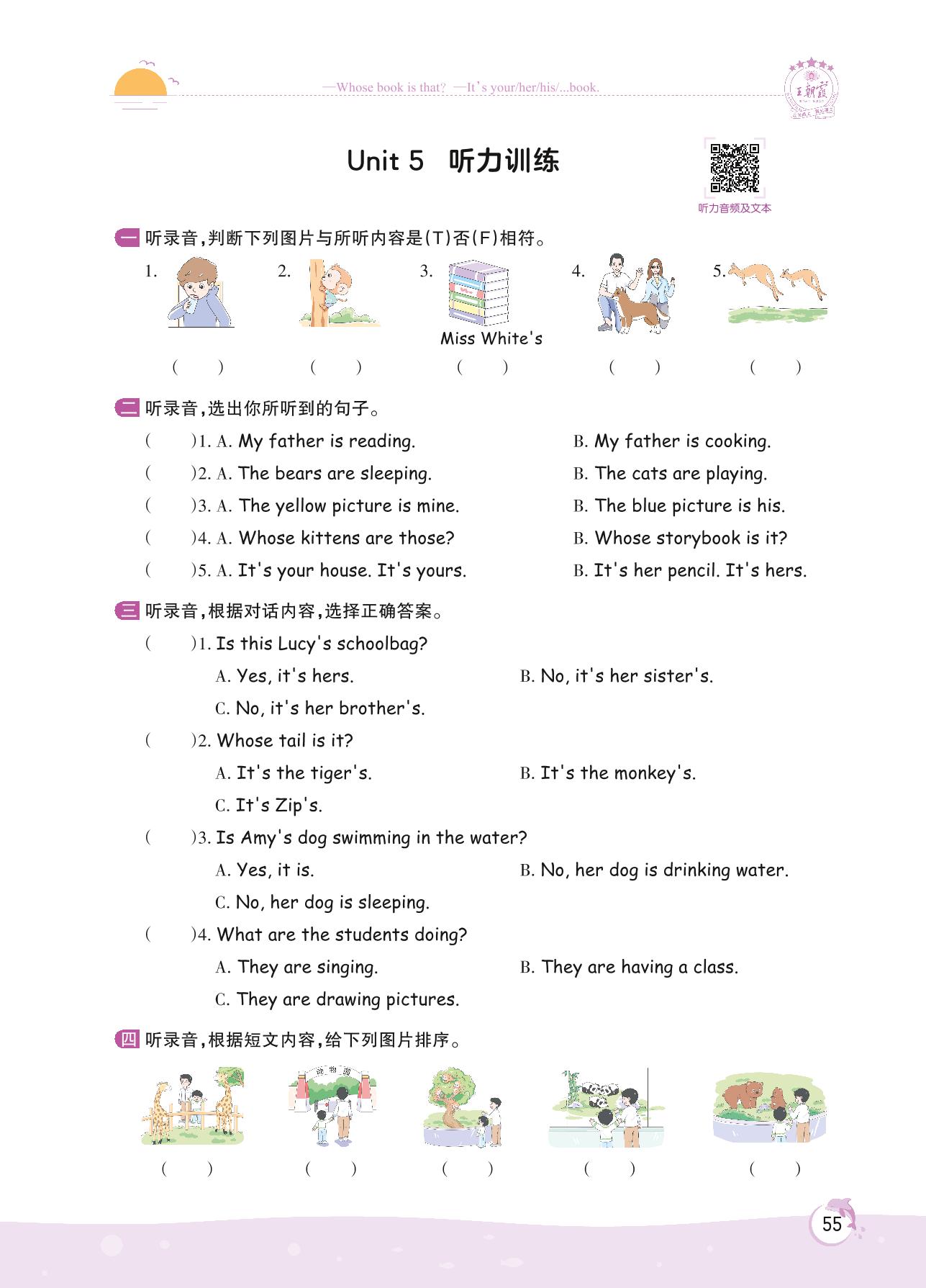2022下册五年级英语人教PEP版 Unit 5 听力训练