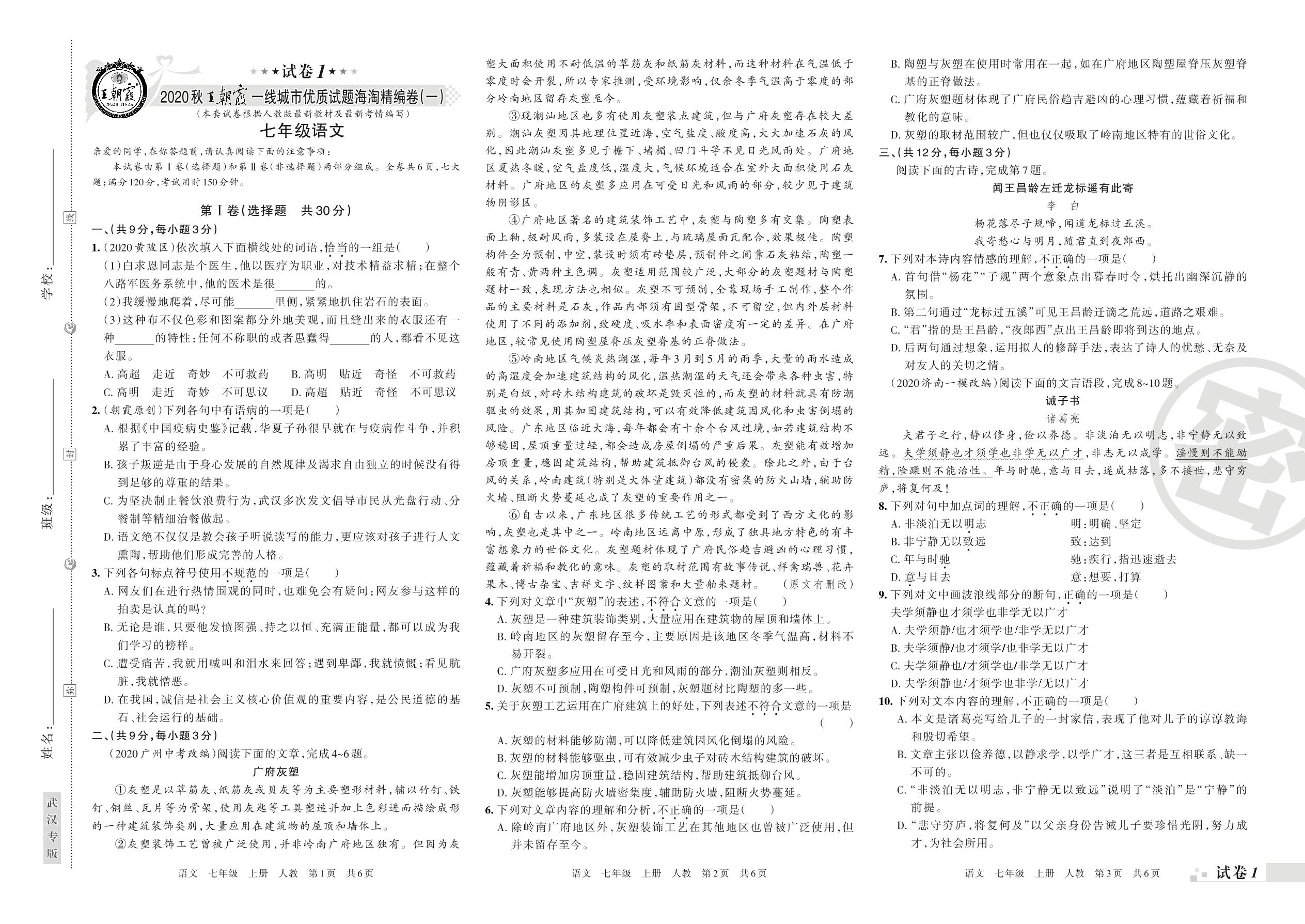王朝霞海淘期末精编卷七年级上册语文(人教版)【1】