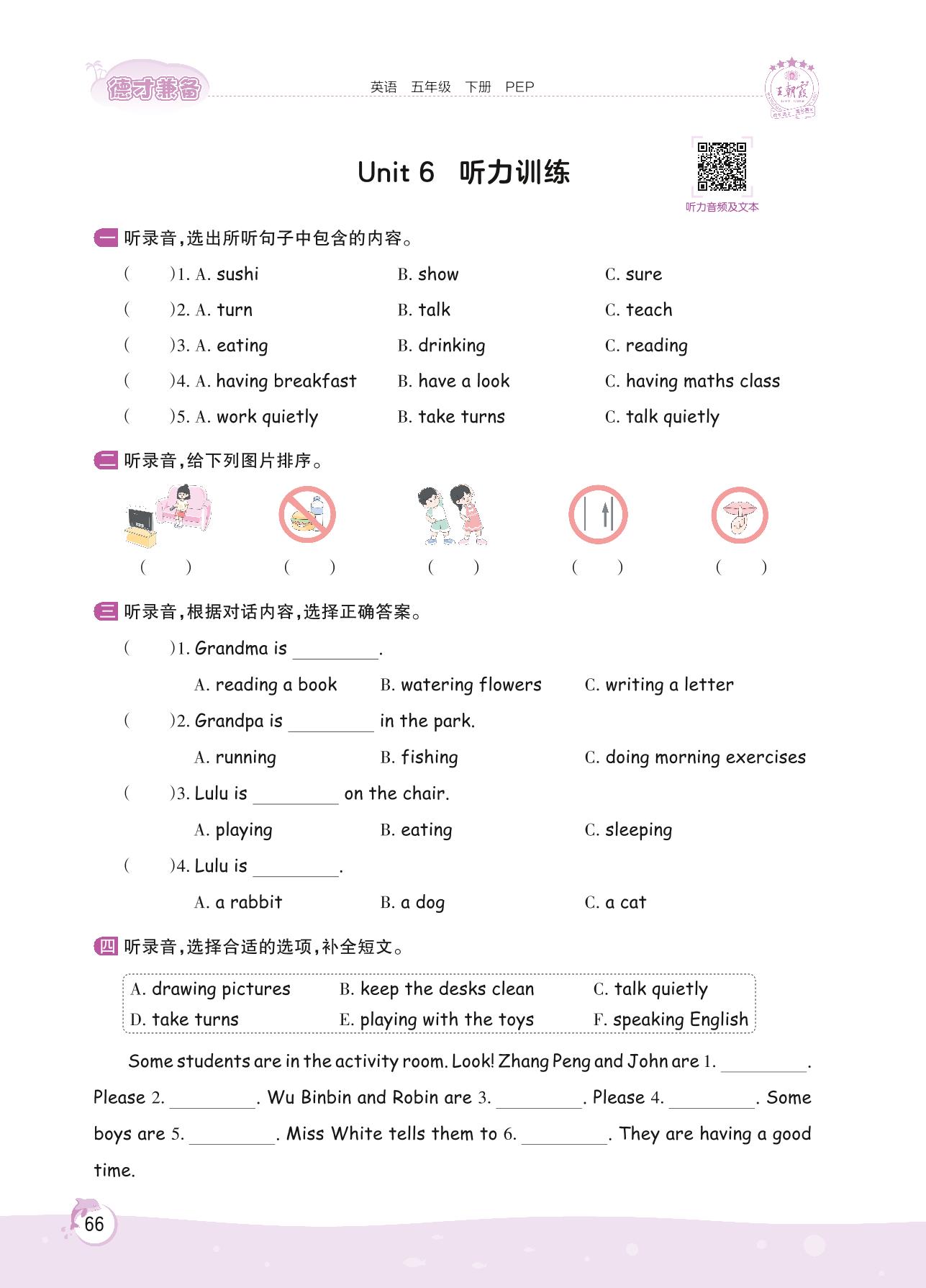 2022下册五年级英语人教PEP版 Unit 6 听力训练