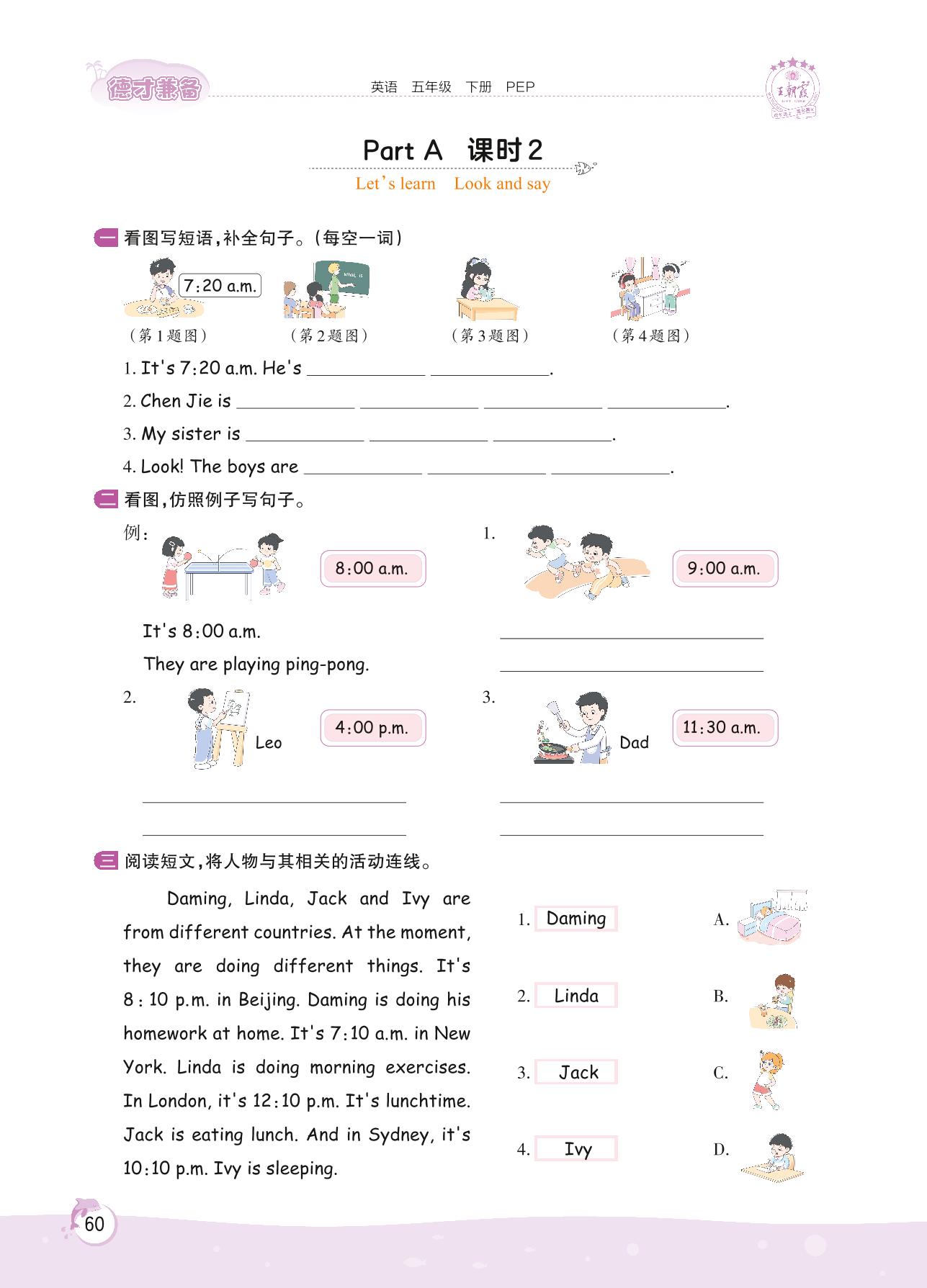2022下册五年级英语人教PEP版 Unit 6 Part A—课时 2 Let’s learn Look and say