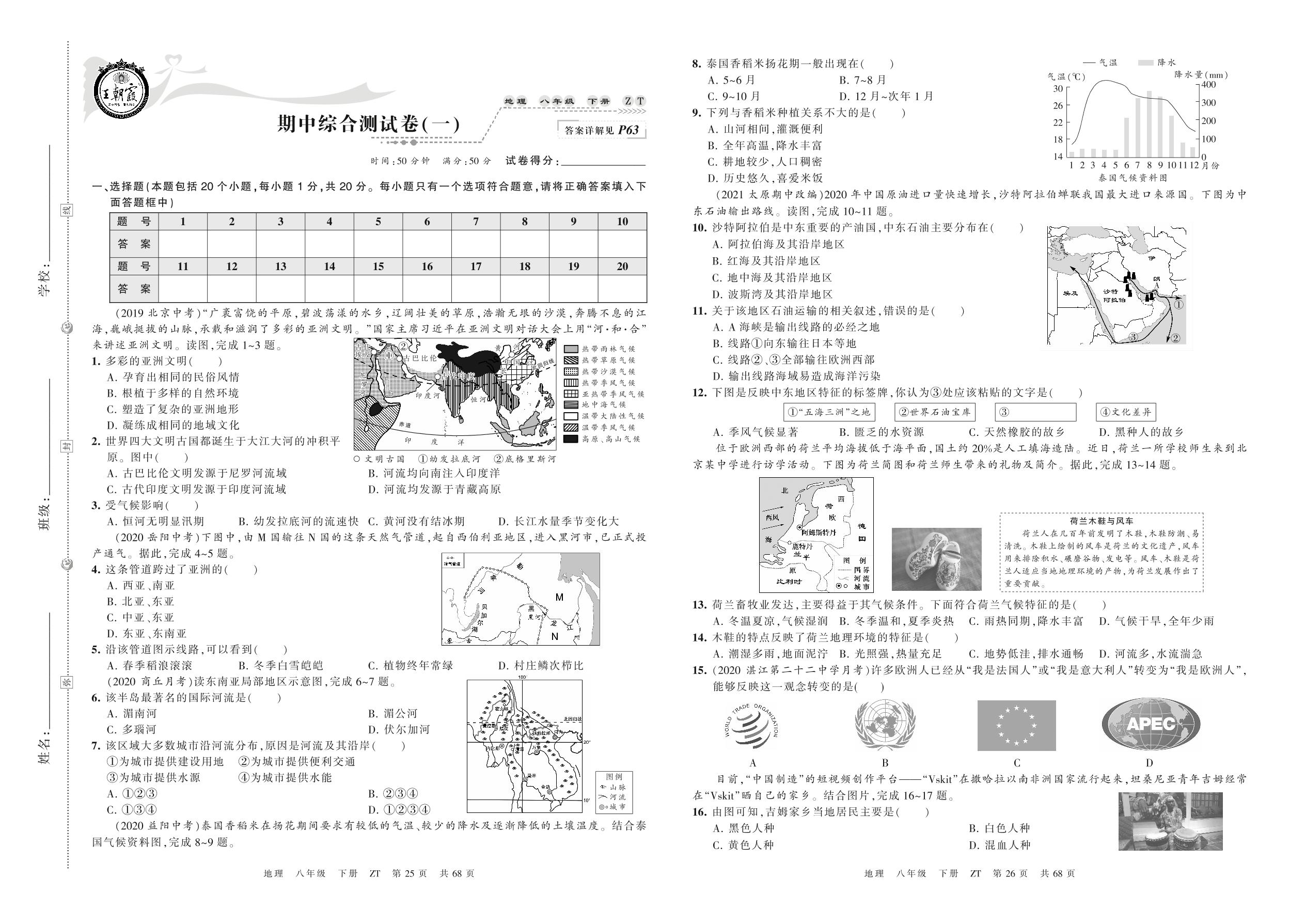 2022下册八年级地理中图版 期中综合测试卷(一)