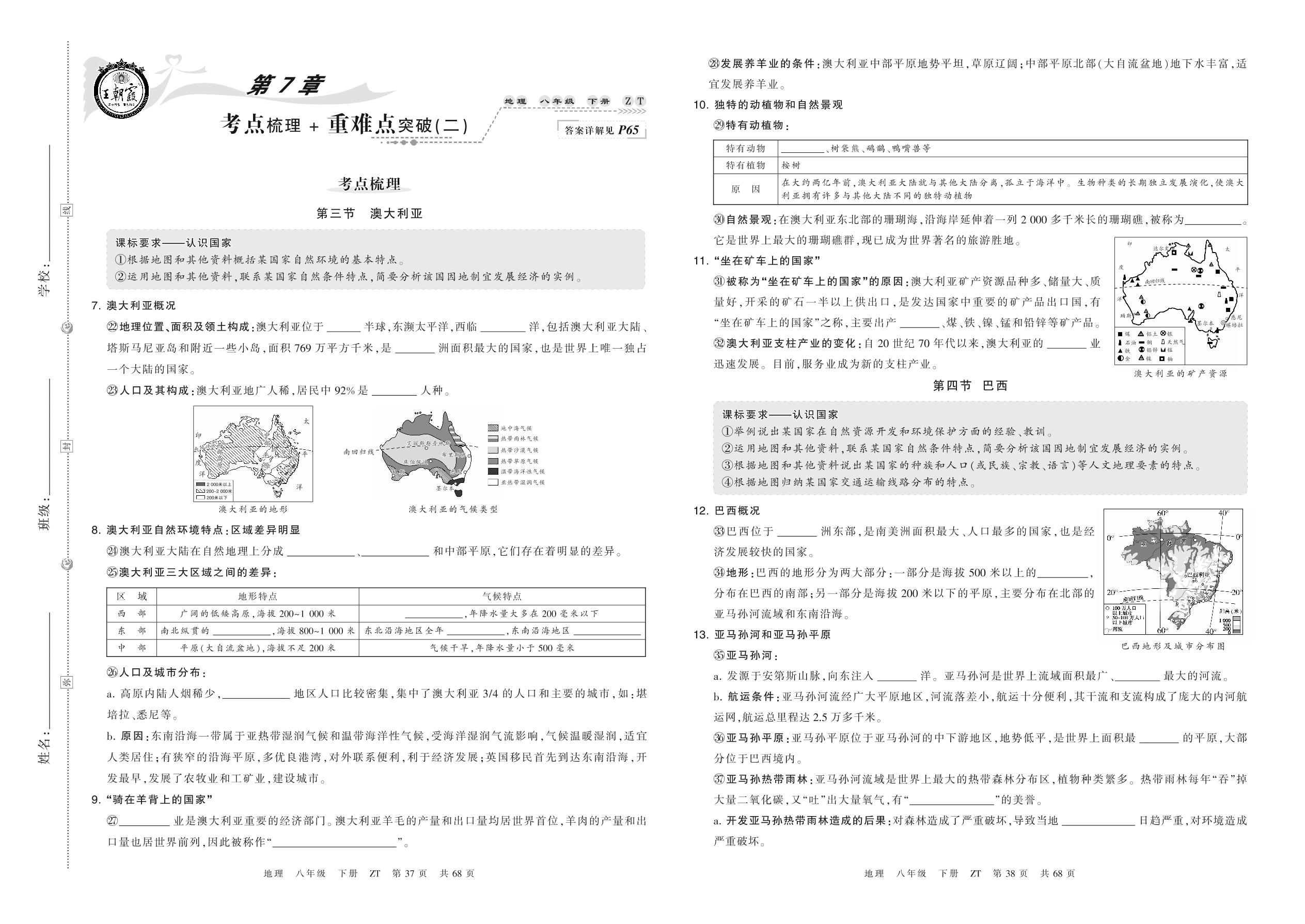 2022下册八年级地理中图版 第7章 考点梳理+重难点突破(二)