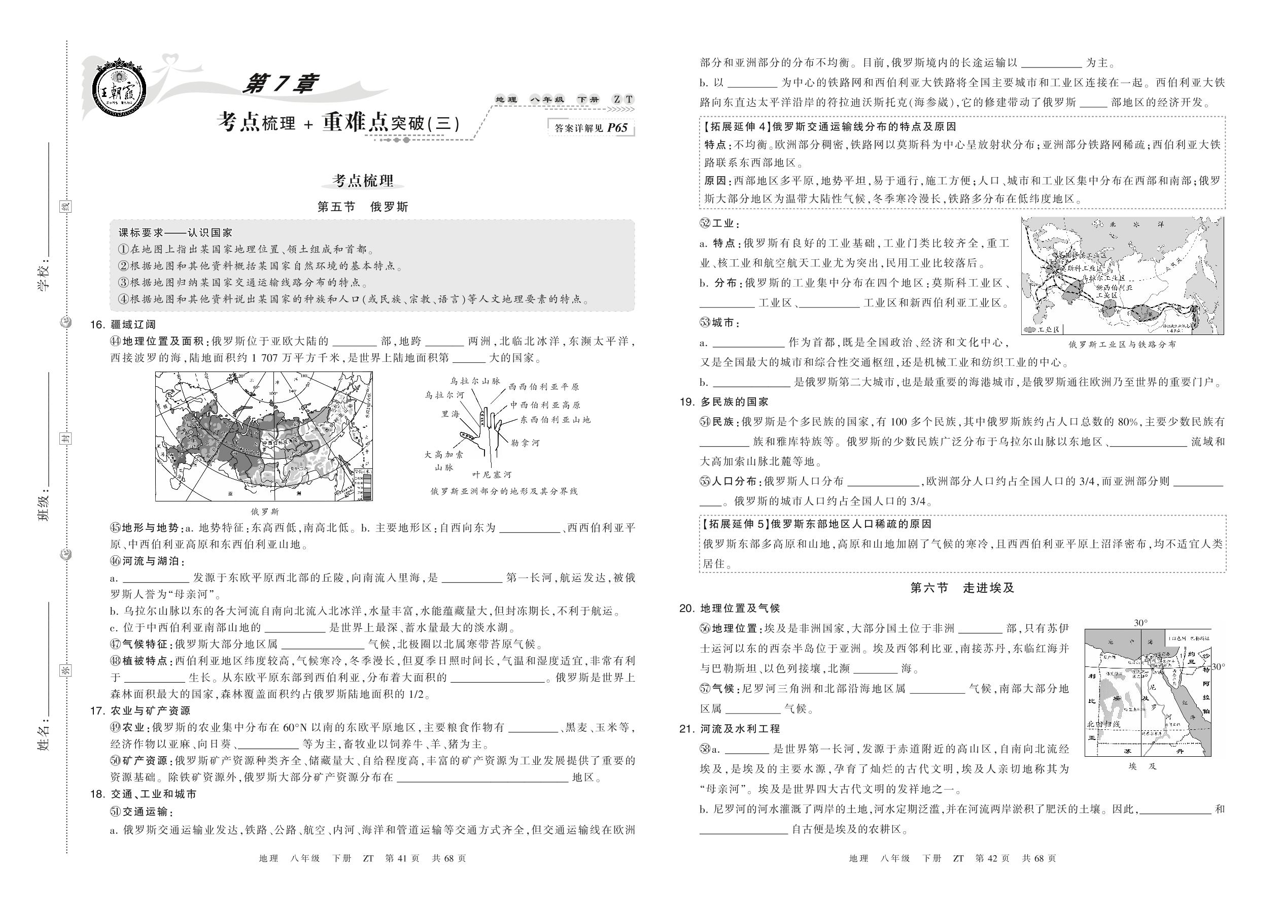 2022下册八年级地理中图版 第7章 考点梳理+重难点突破(三)