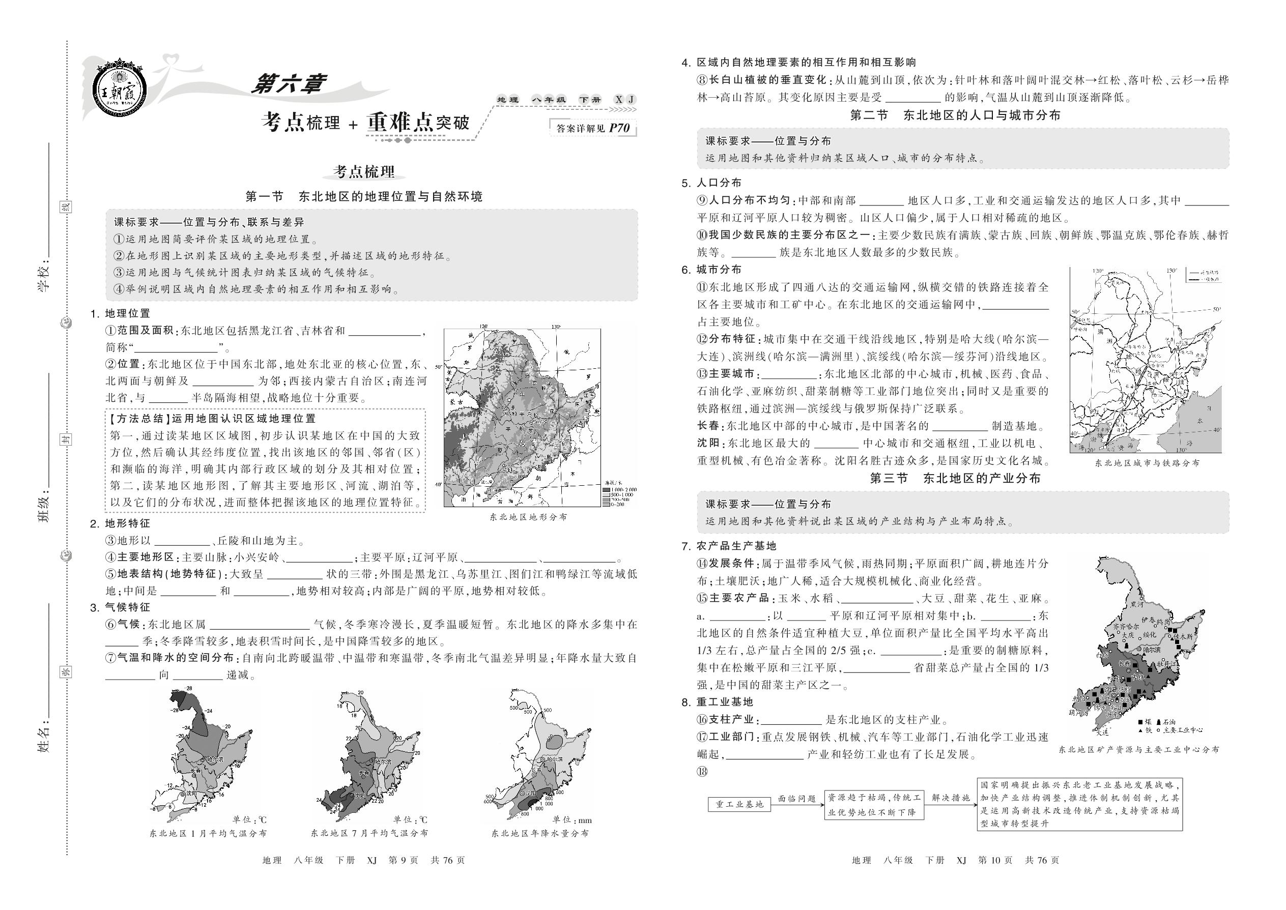 2022下册八年级地理湘教版 第六章 考点梳理+重难点突破