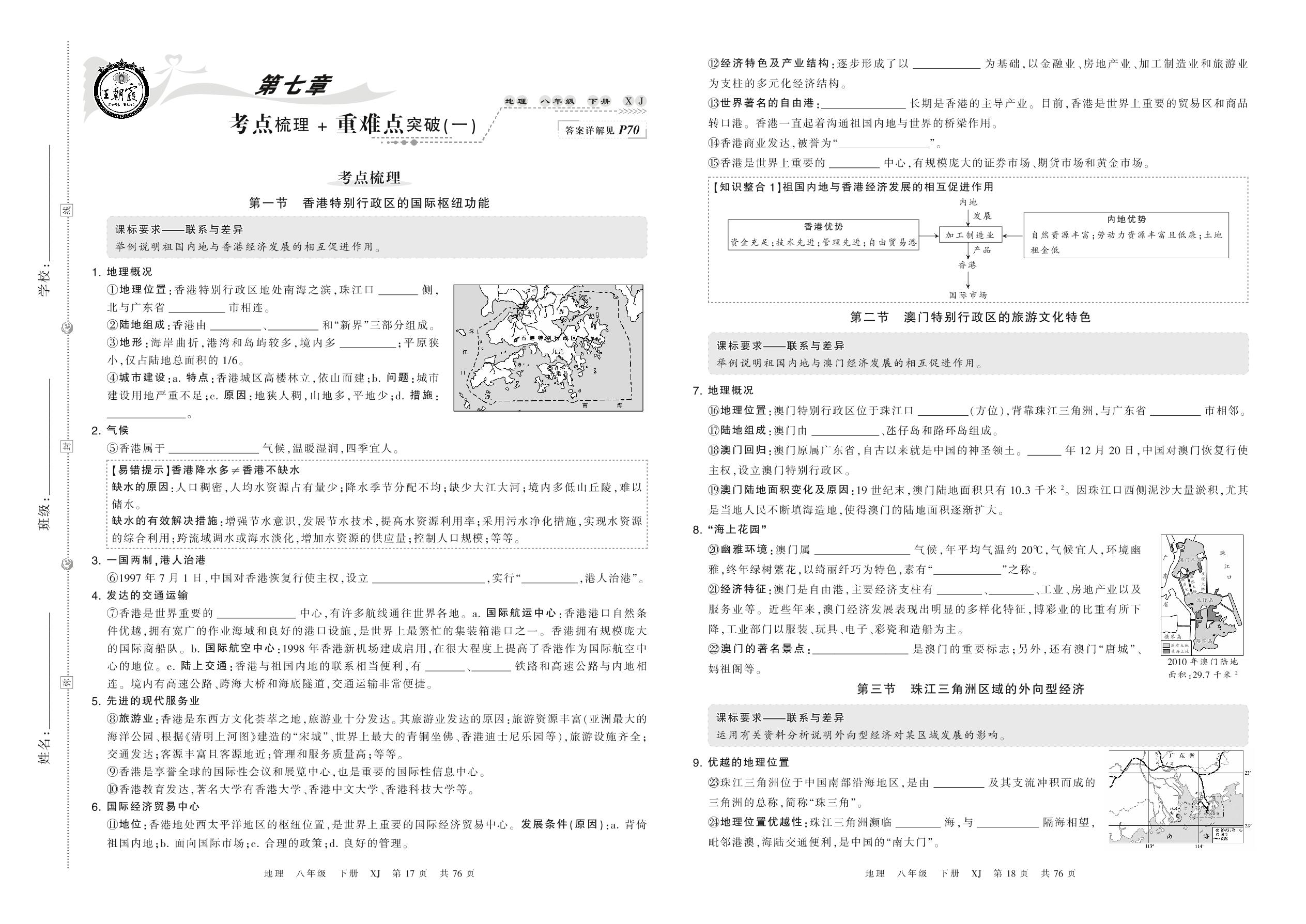 2022下册八年级地理湘教版 第七章 考点梳理+重难点突破(一)