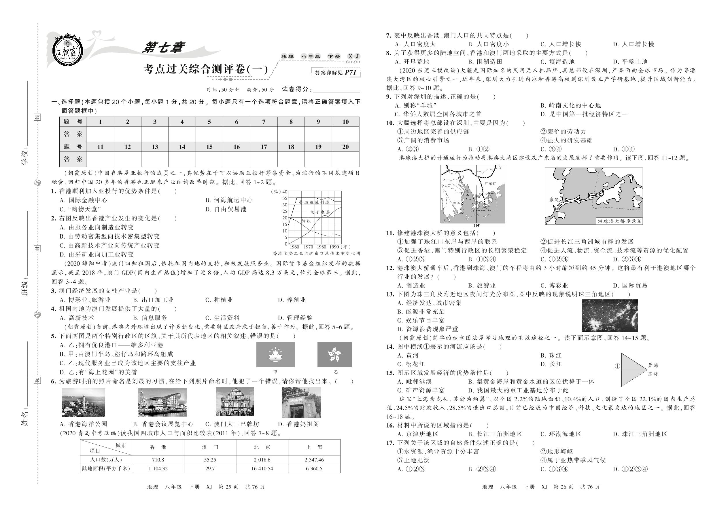 2022下册八年级地理湘教版 第七章 考点过关综合测评卷(一)