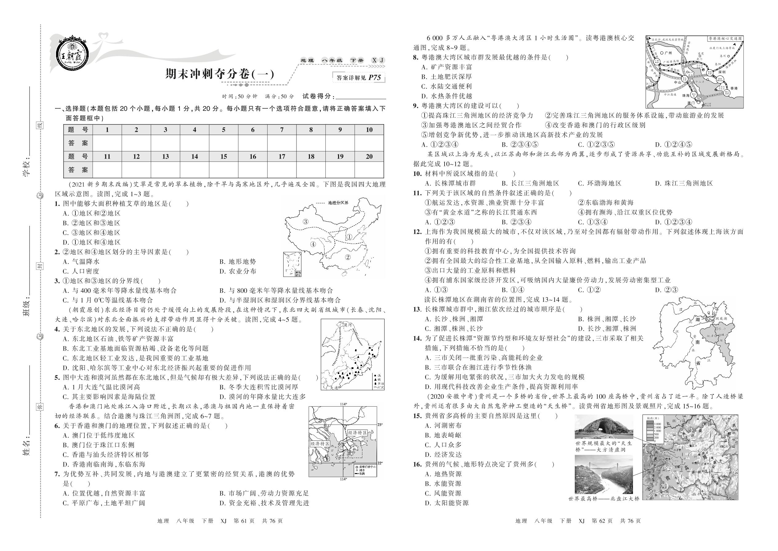 2022下册八年级地理湘教版 期末冲刺夺分卷(一)