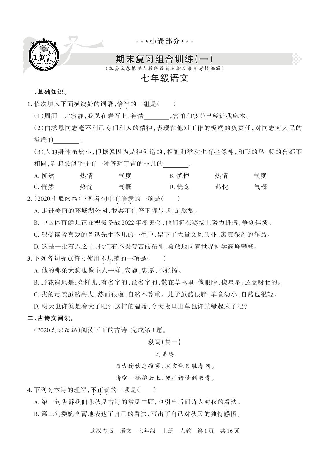 王朝霞期末小卷七年级上册语文(人教版)_R2108024608【0】