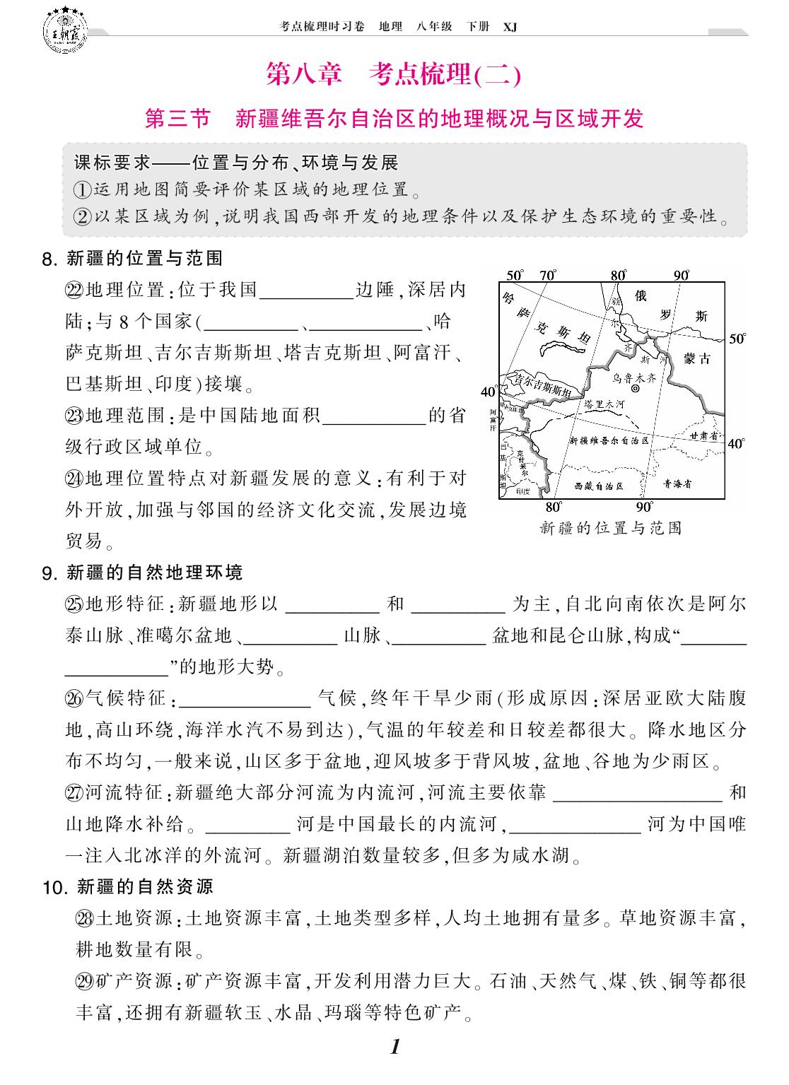 2022下册八年级地理湘教版 第八章 考点梳理(二)