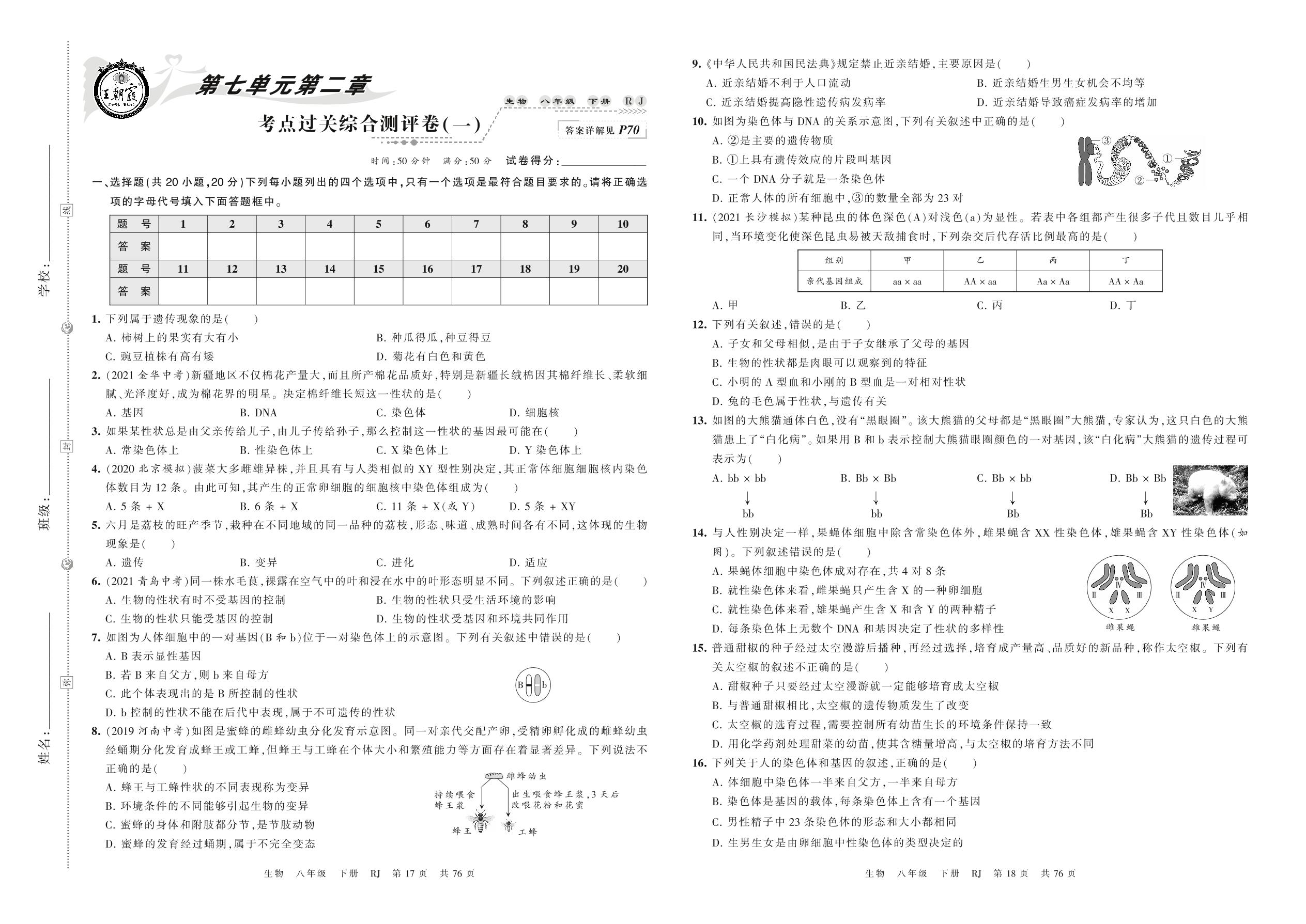 2022下册八年级生物人教版 第七单元第二章 考点过关综合测评卷(一)