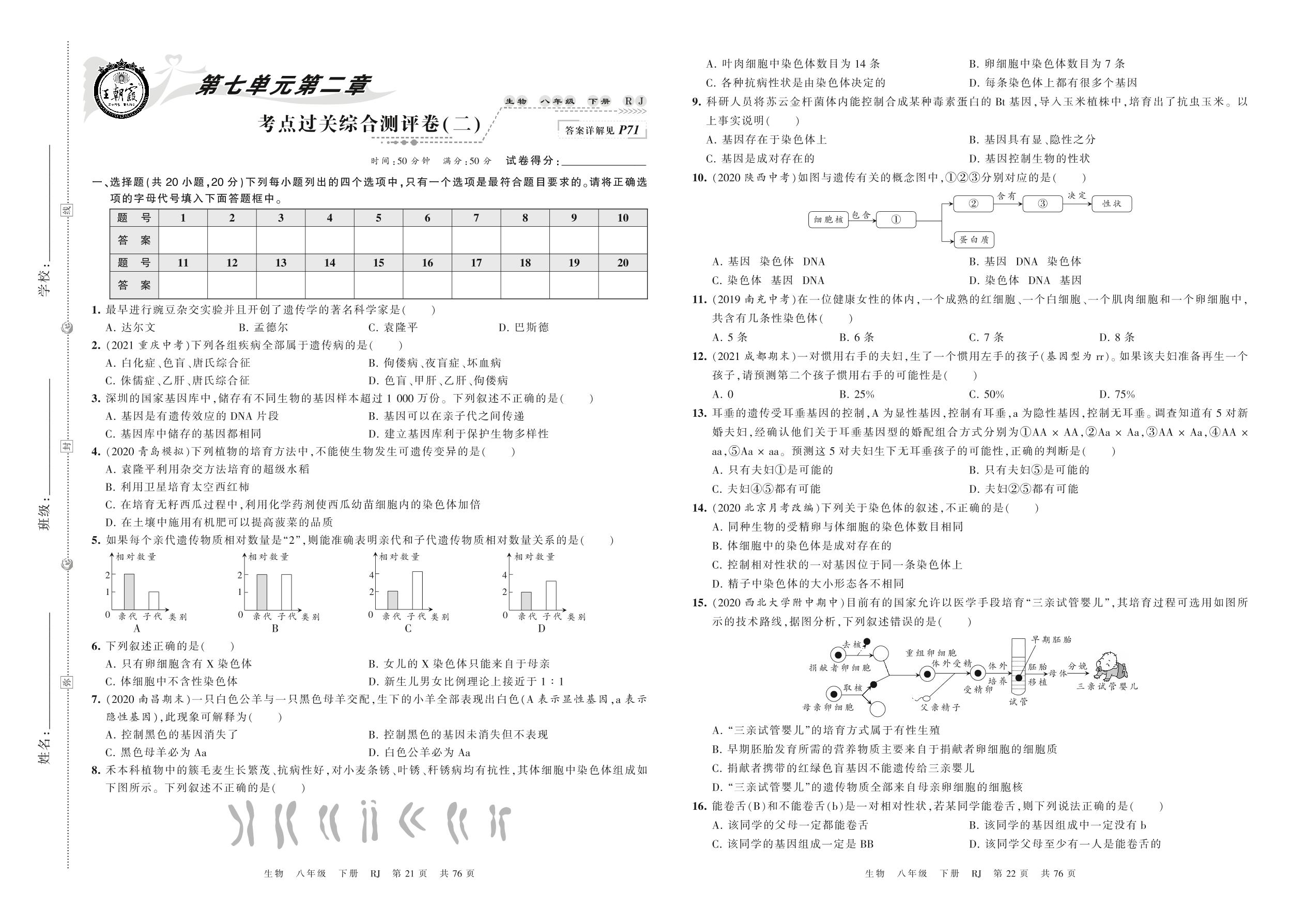 八年级生物人教版下册单元卷