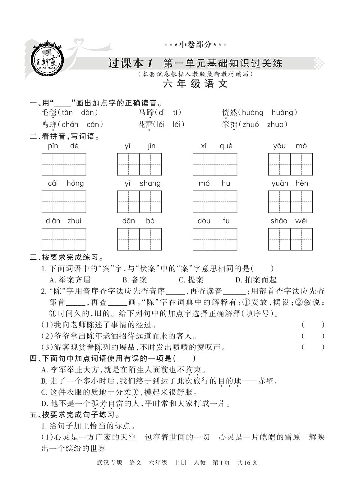 王朝霞期末过课本六年级上册语文(人教版)_R2108024614【0】