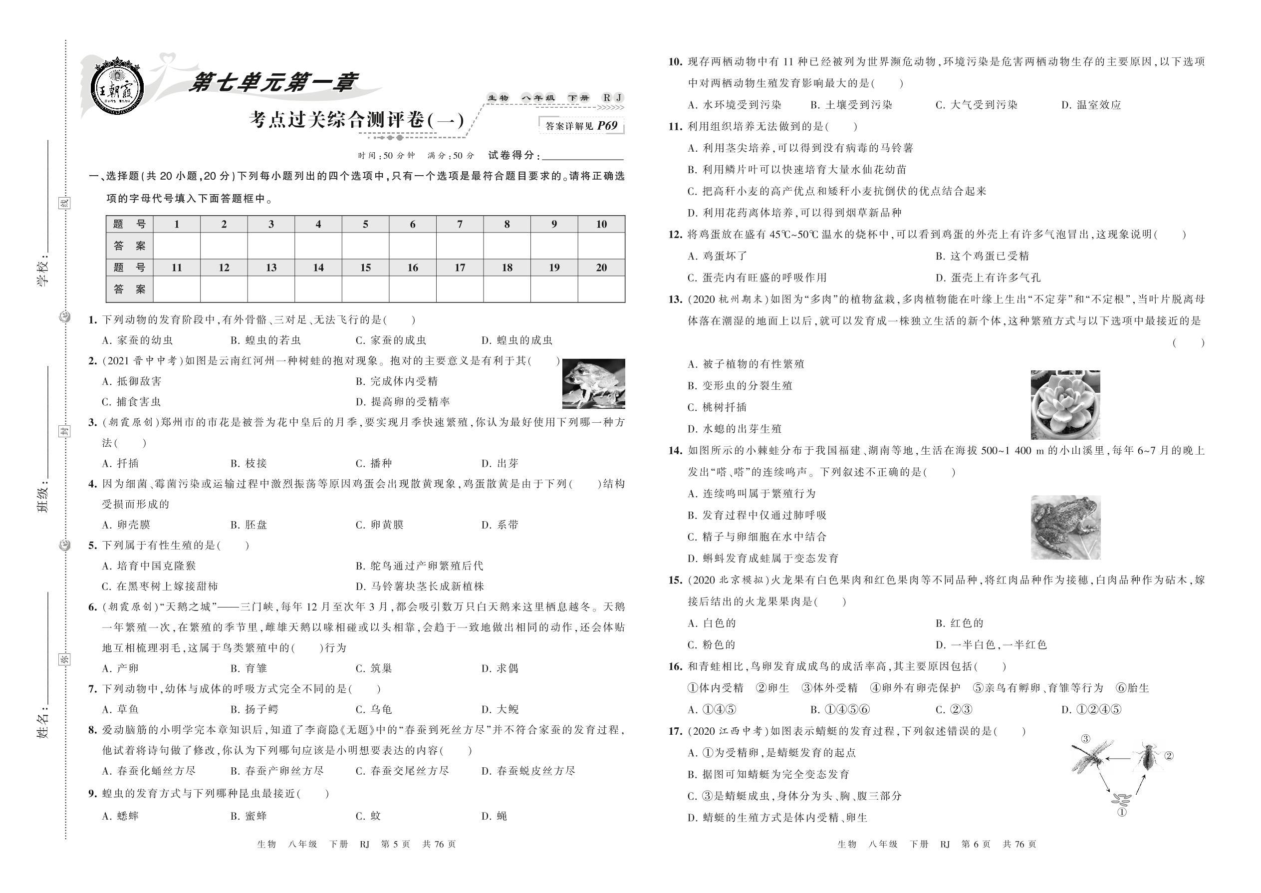 2022下册八年级生物人教版 第七单元第一章 考点过关综合测评卷(一)