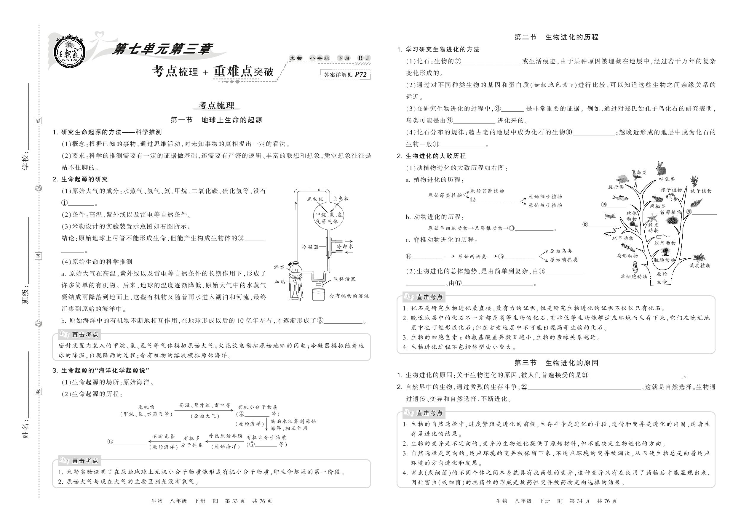 2022下册八年级生物人教版 第七单元第三章 考点梳理 + 重难点突破