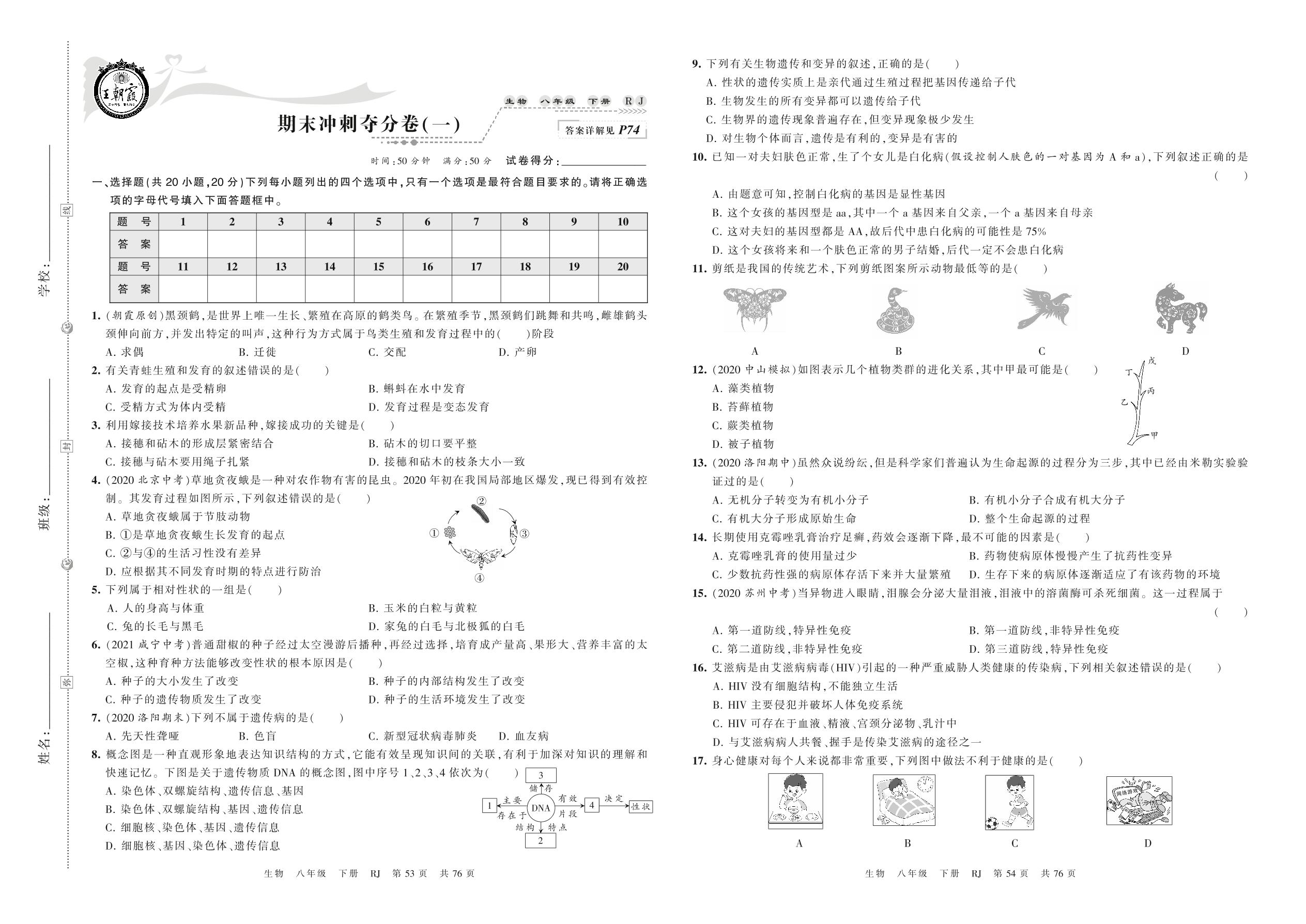 2022下册八年级生物人教版 期末冲刺夺分卷(一)