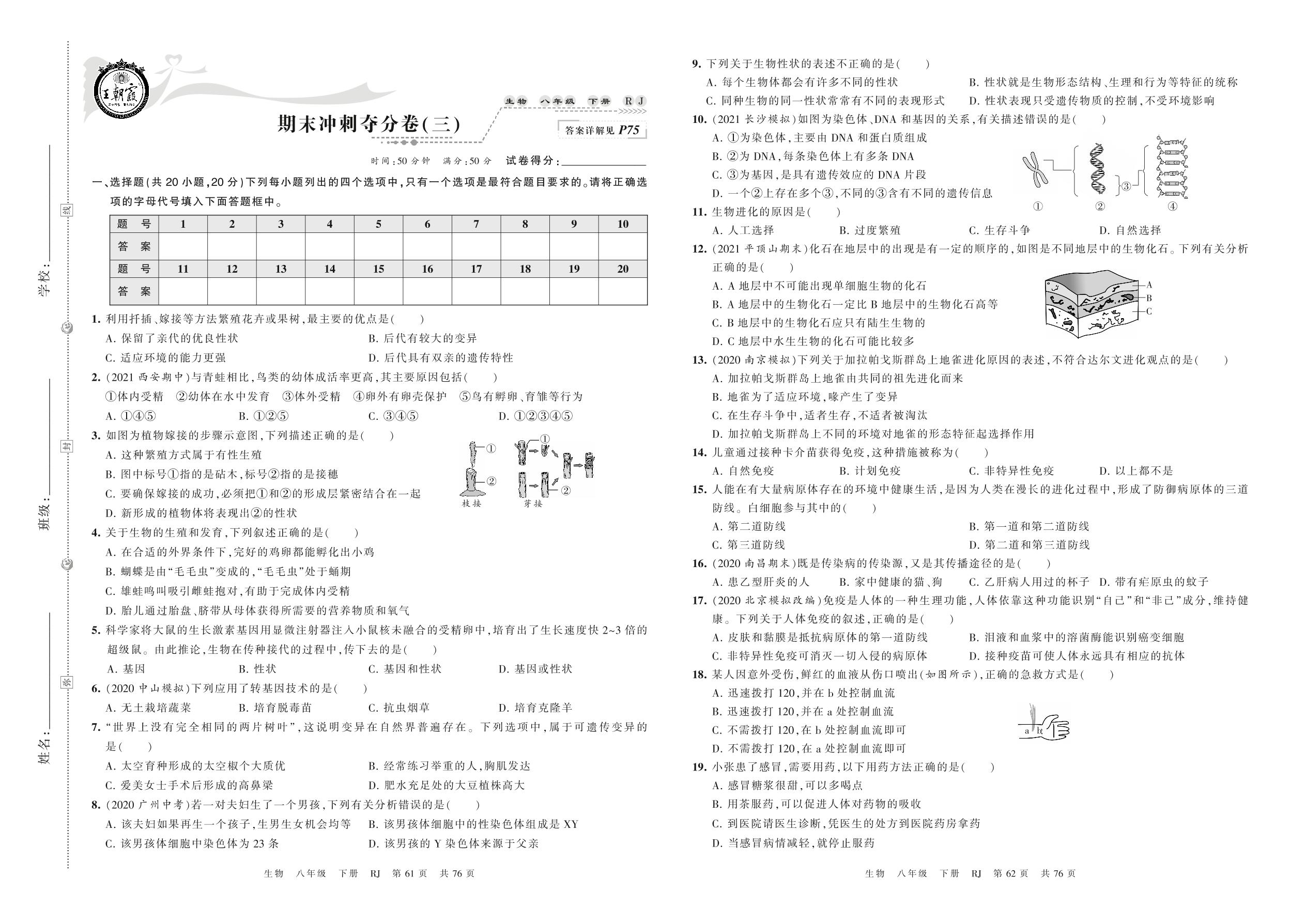 2022下册八年级生物人教版 期末冲刺夺分卷(三)