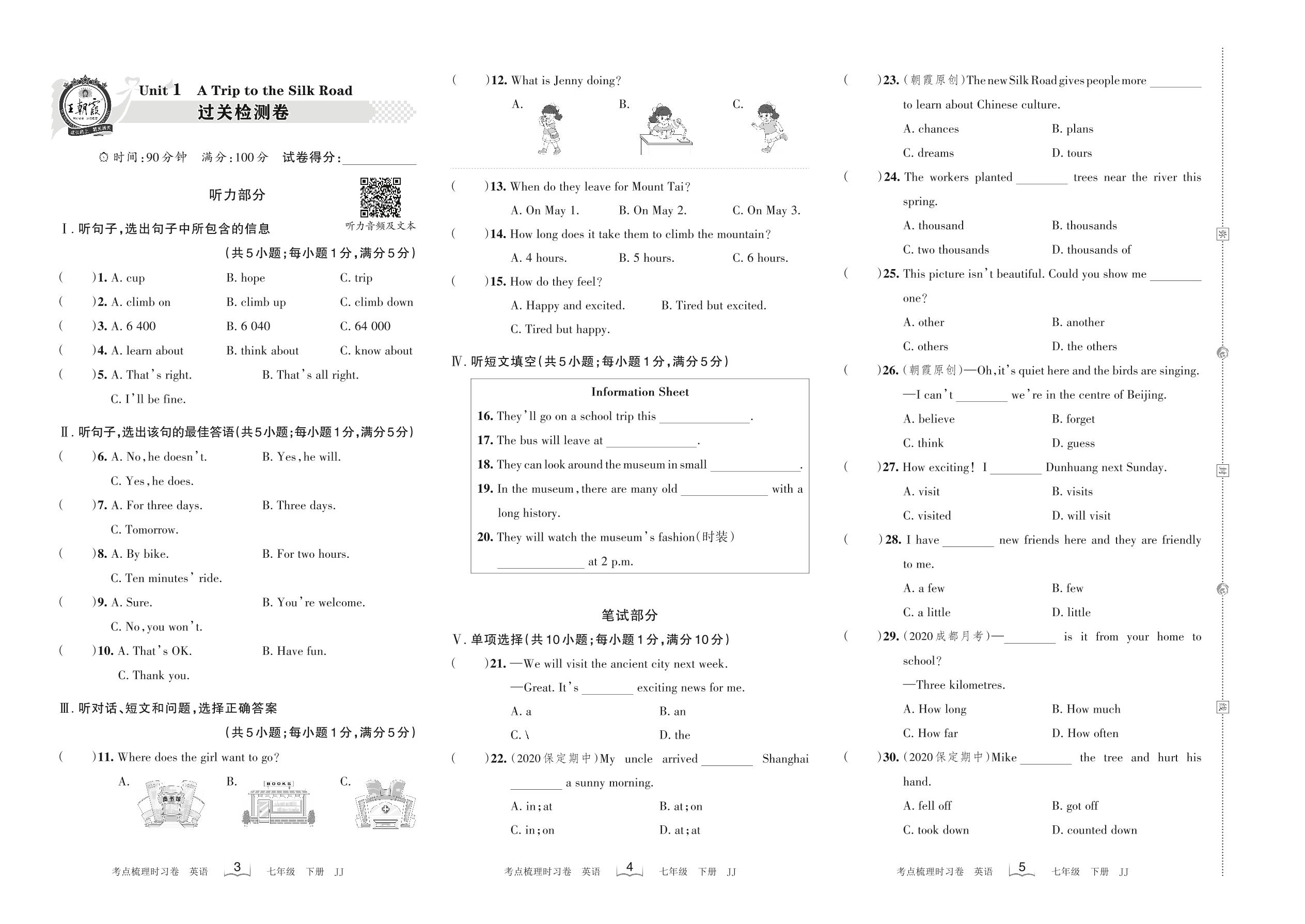 七年级英语冀教版下册单元卷