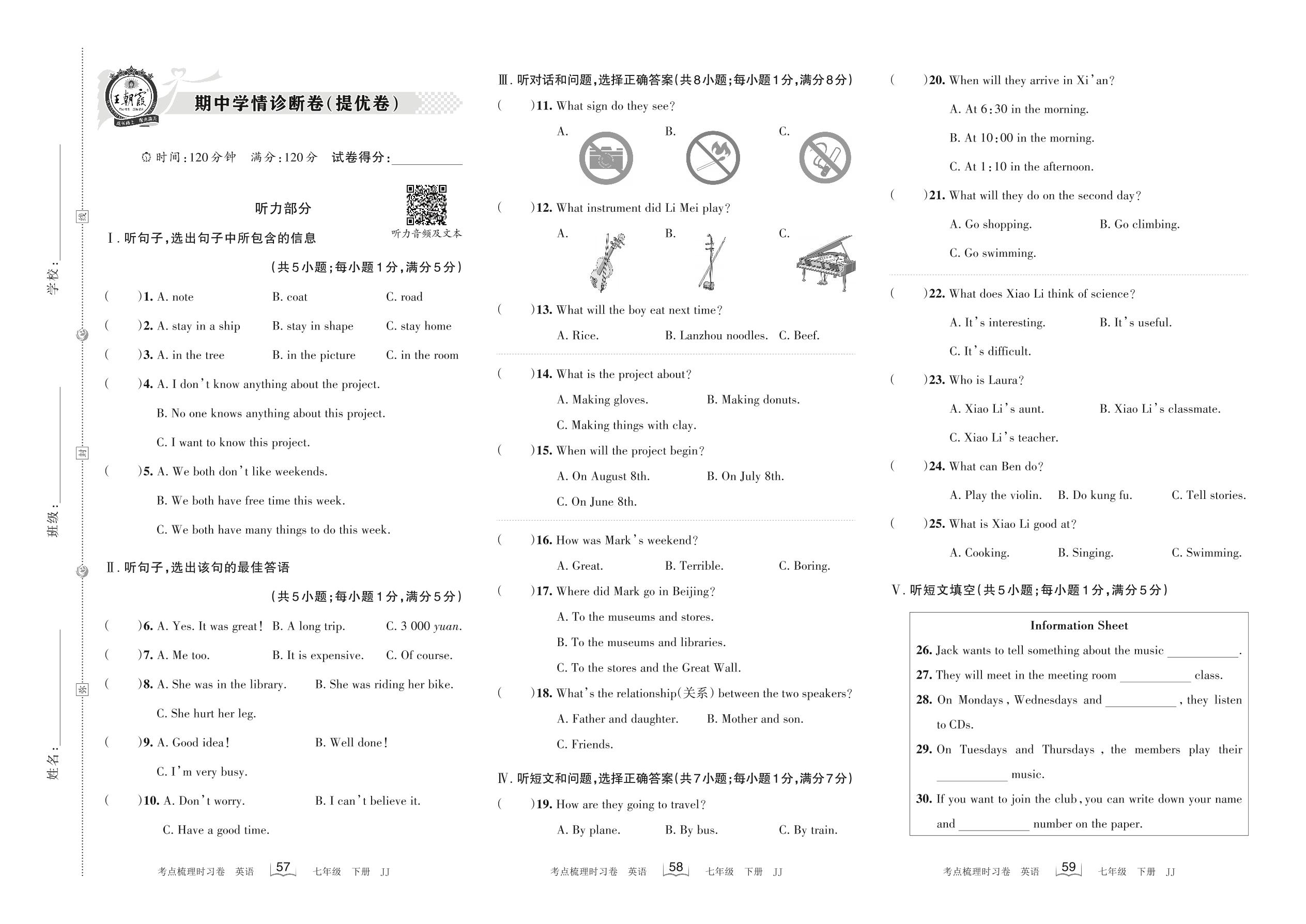 2022下册七年级英语冀教版 期中学情诊断卷(提优卷)