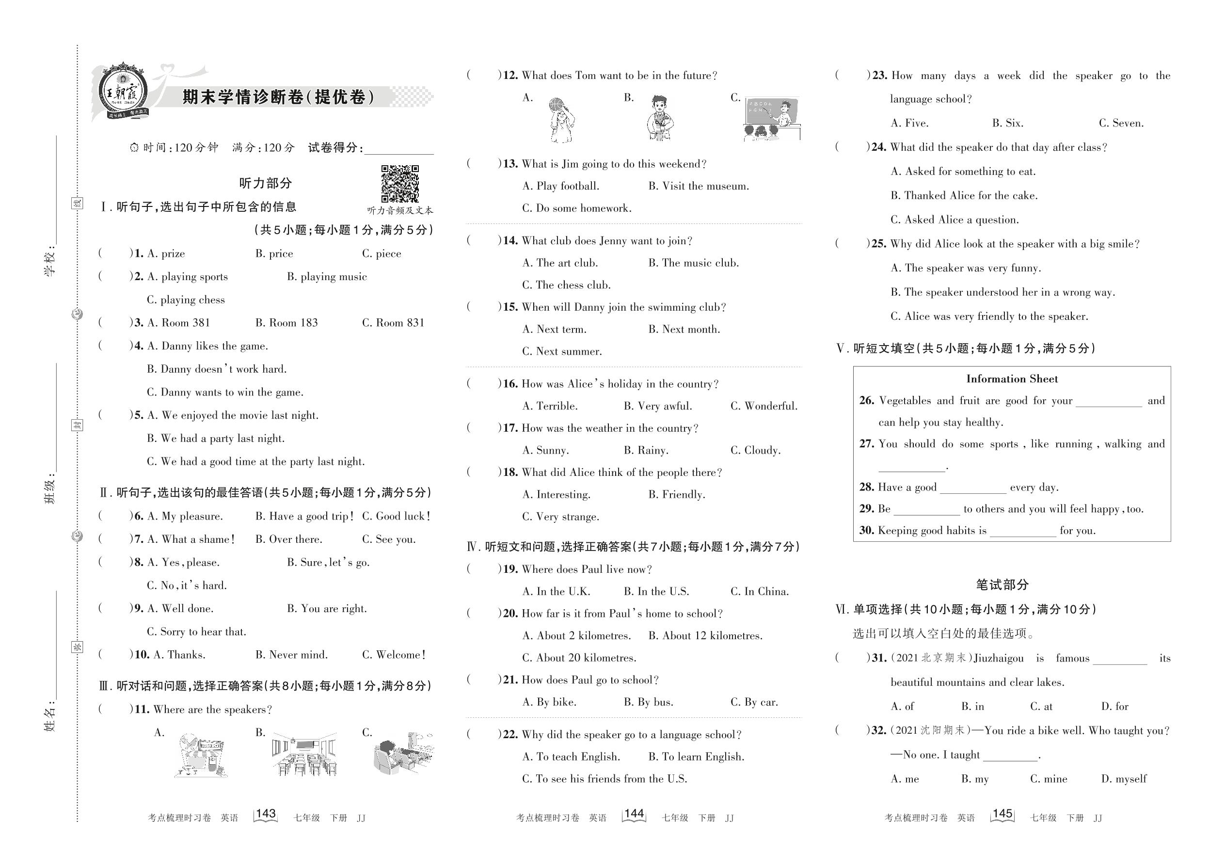 七年级英语冀教版下册期末卷