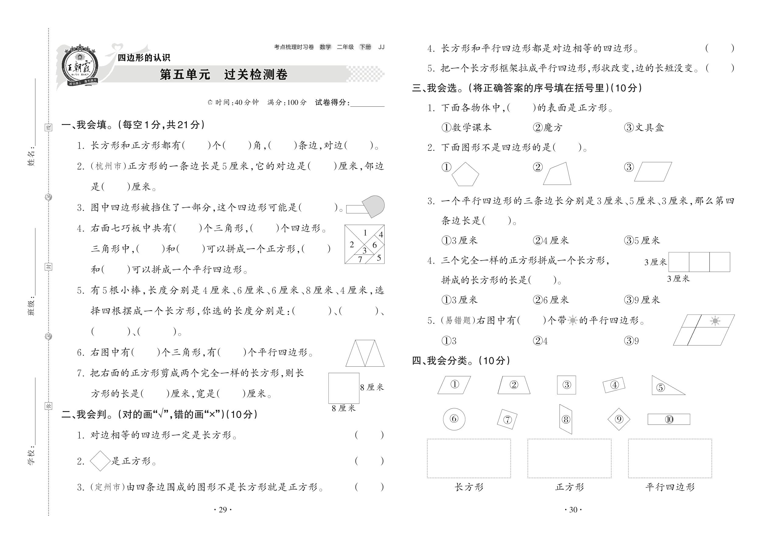 二年级数学冀教版下册单元卷