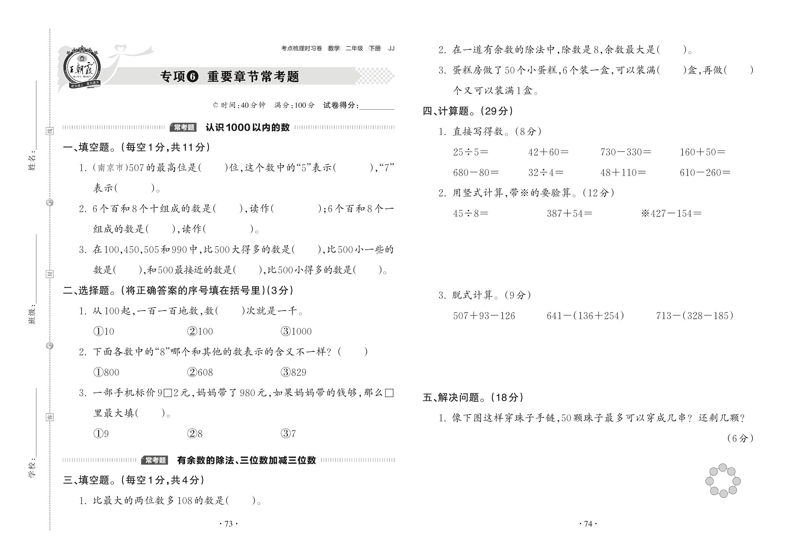 二年级数学冀教版下册专项卷