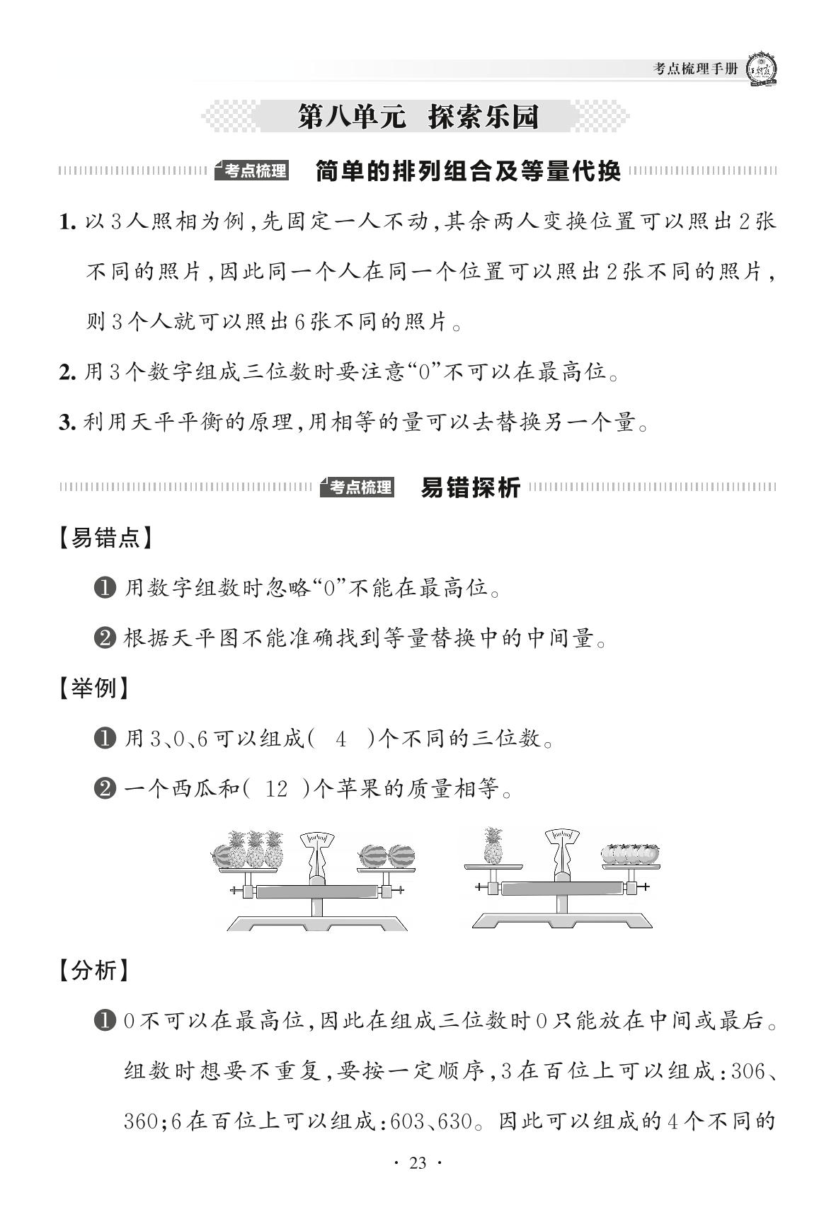 2022下册二年级数学冀教版 考点梳理手册——第八单元 探索乐园