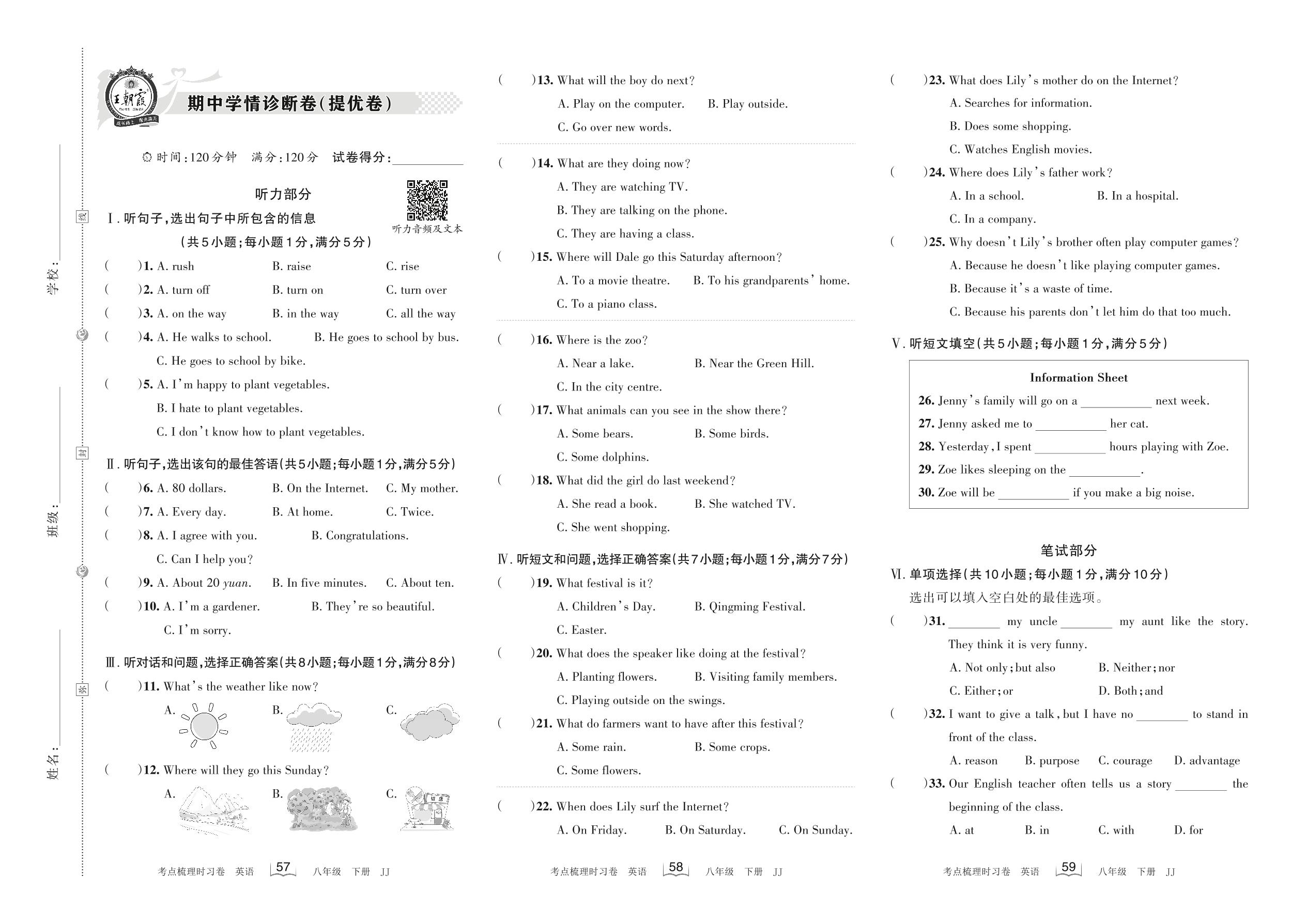 2022下册八年级英语冀教版 期中学情诊断卷(提优卷)