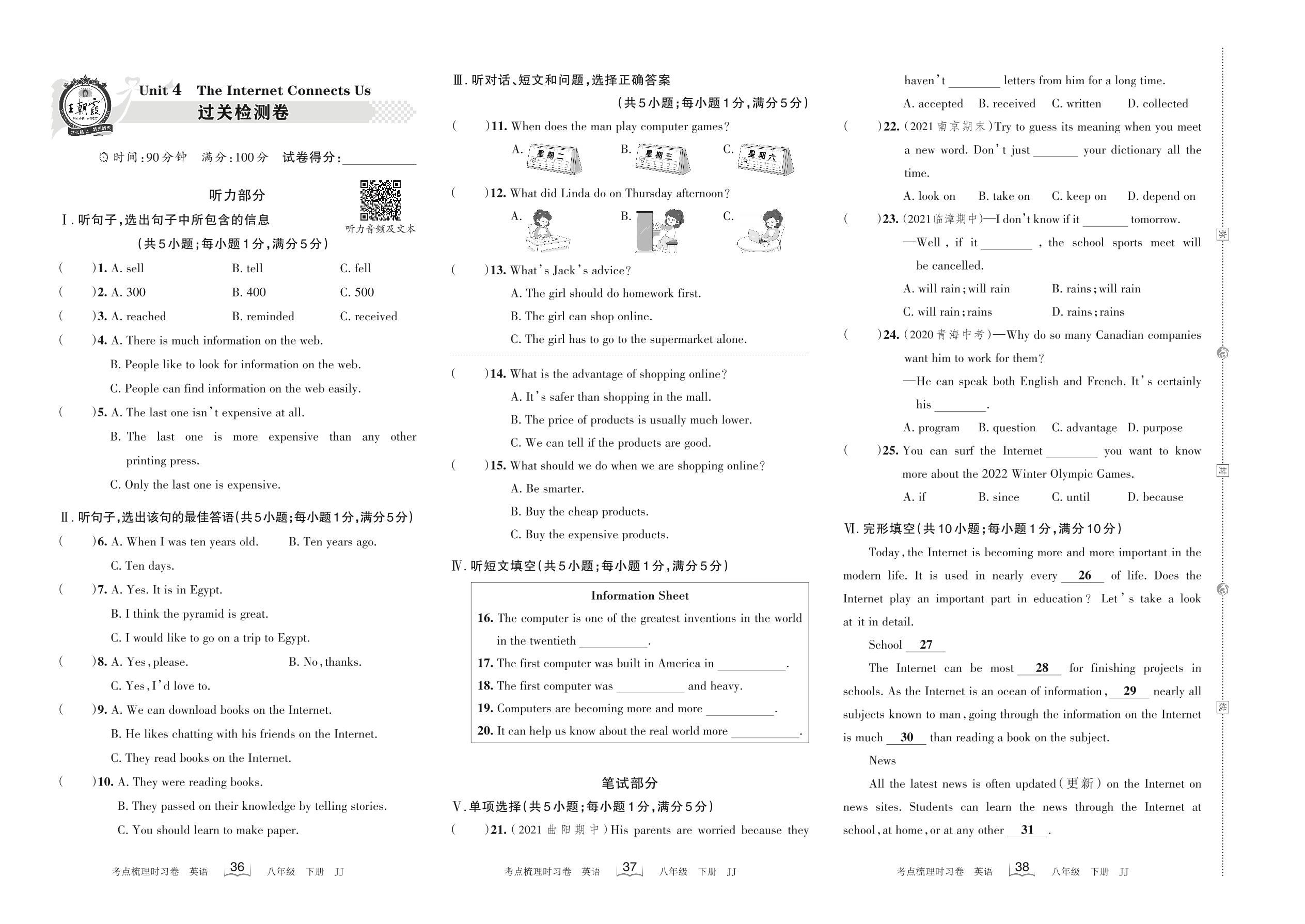 2022下册八年级英语冀教版 Unit 4 过关检测卷