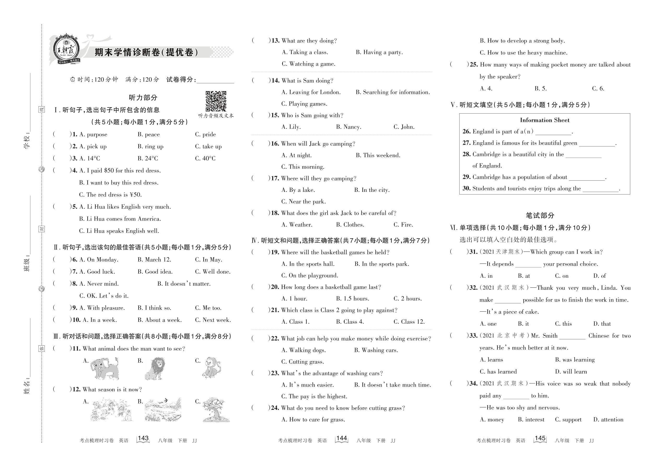 2022下册八年级英语冀教版 期末学情诊断卷(提优卷)