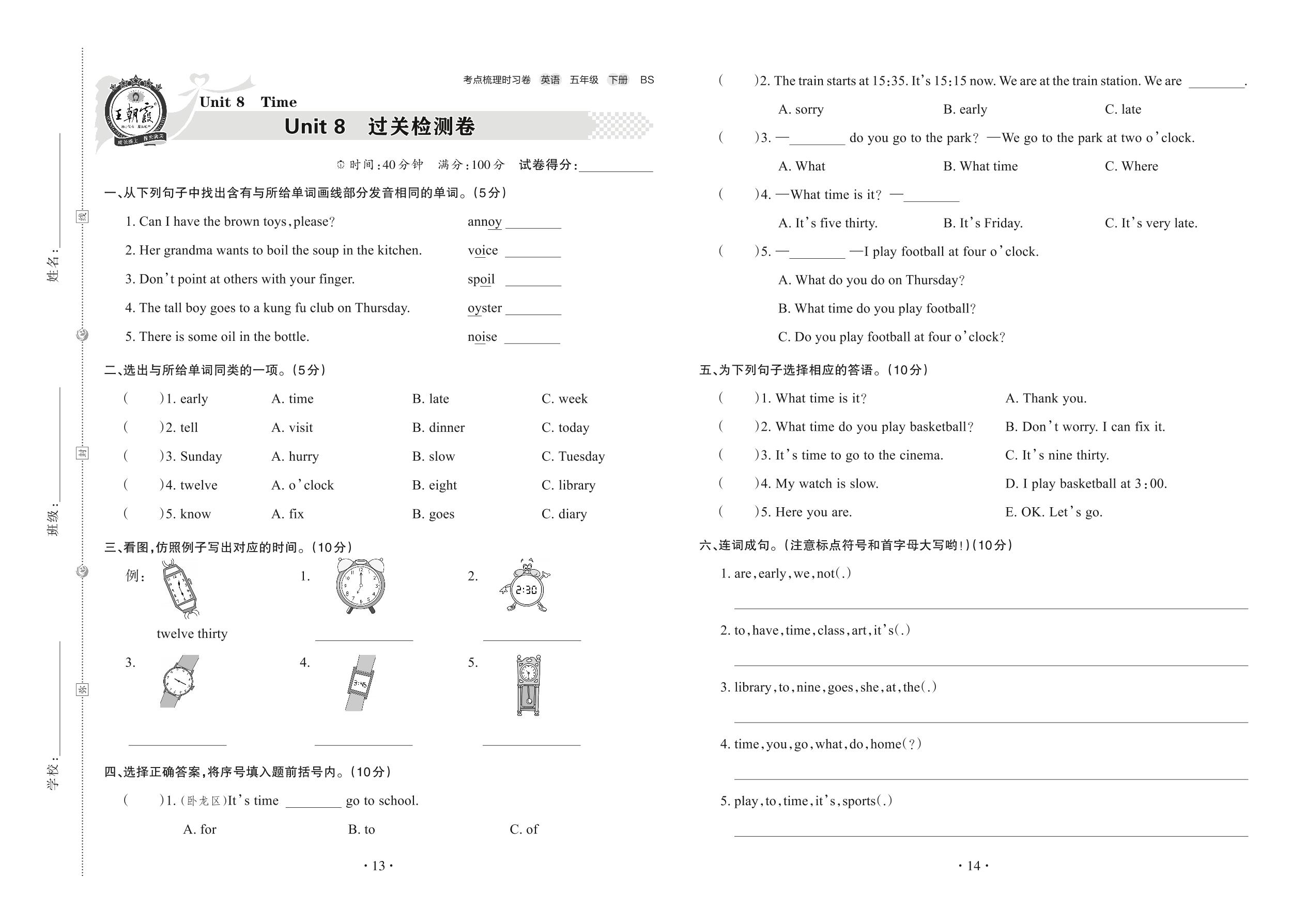 2022下册五年级英语北师版 Unit 8 过关检测卷