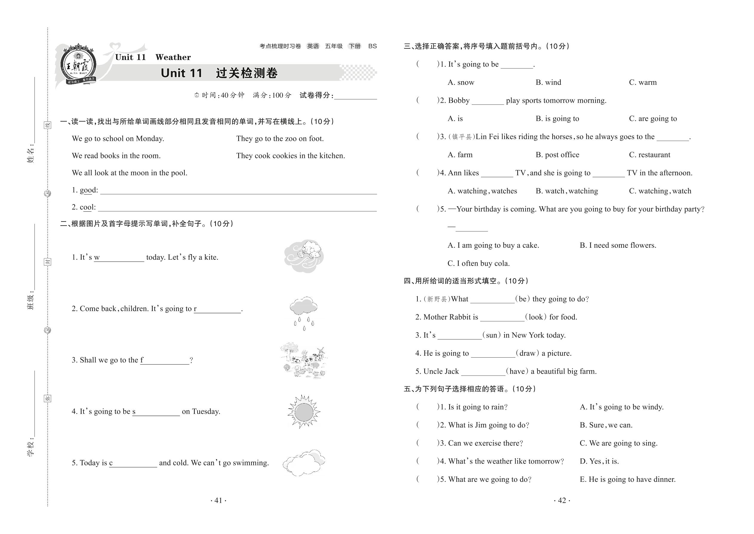 2022下册五年级英语北师版 Unit 11 过关检测卷