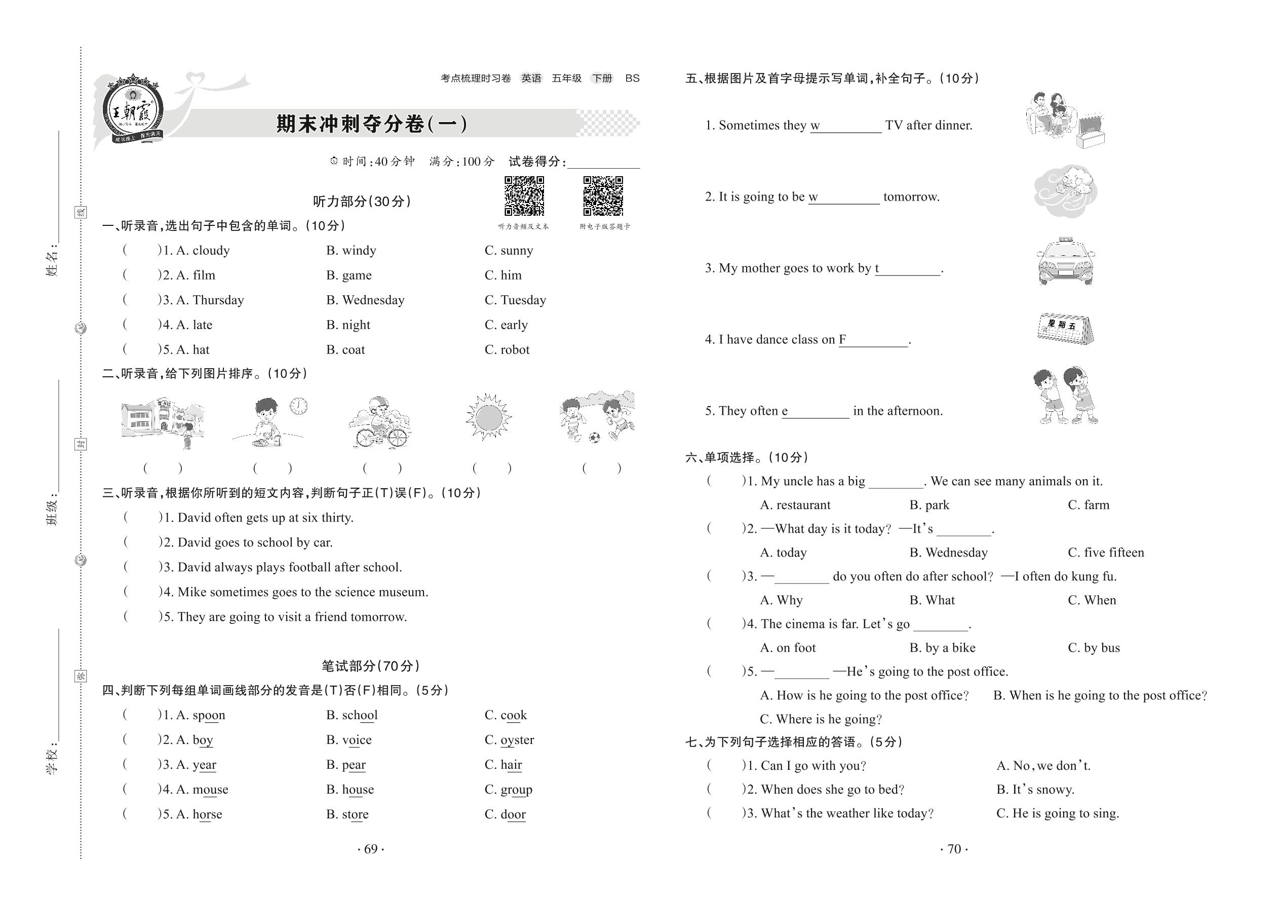 2022下册五年级英语北师版 期末冲刺夺分卷(一)