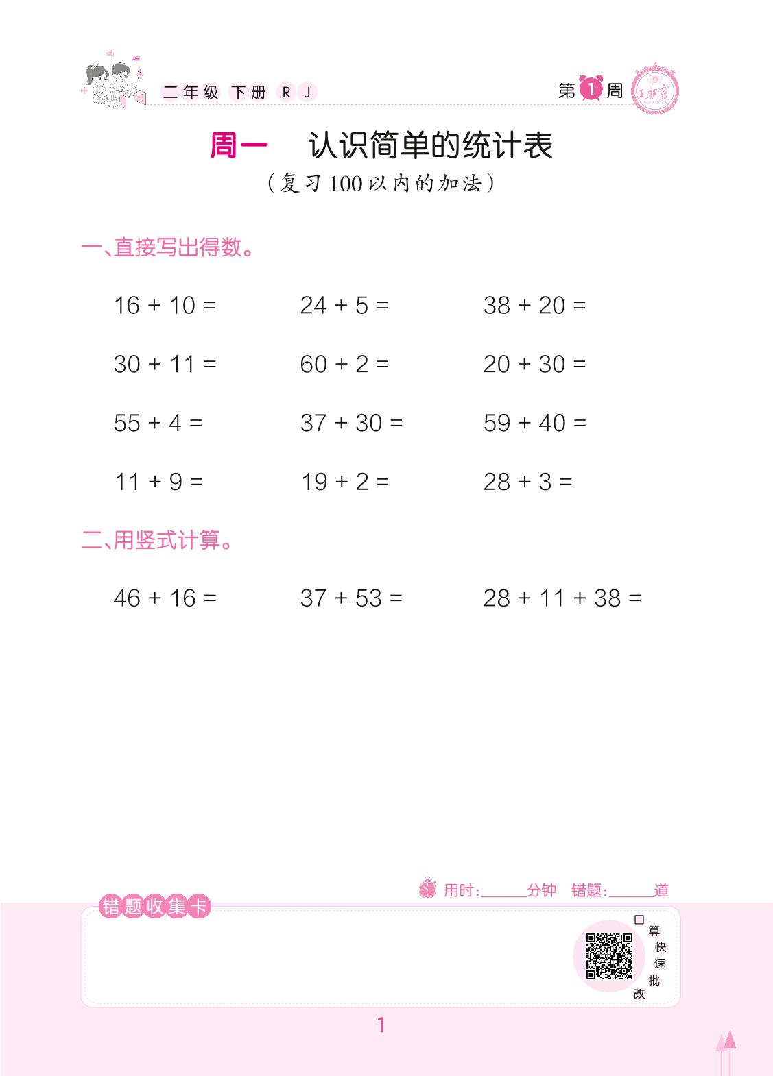 2022下册二年级数学人教版 第1周 周一