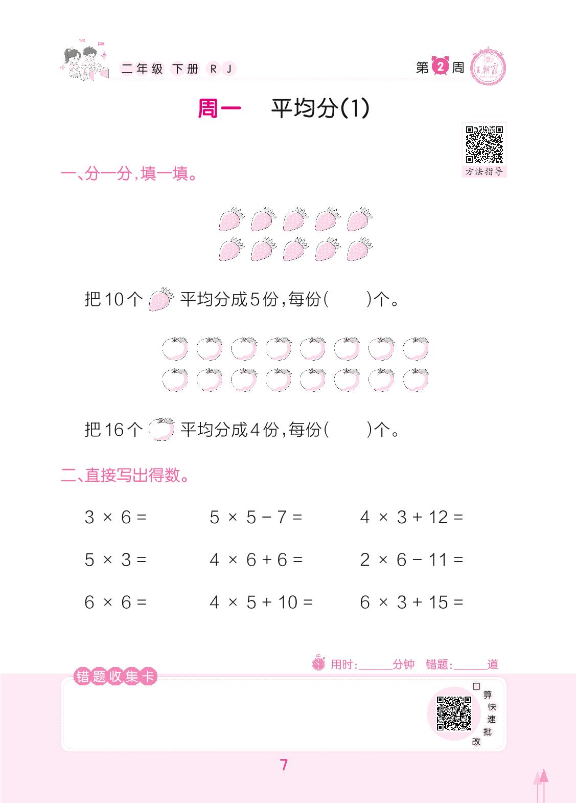 2022下册二年级数学人教版 第2周 周一