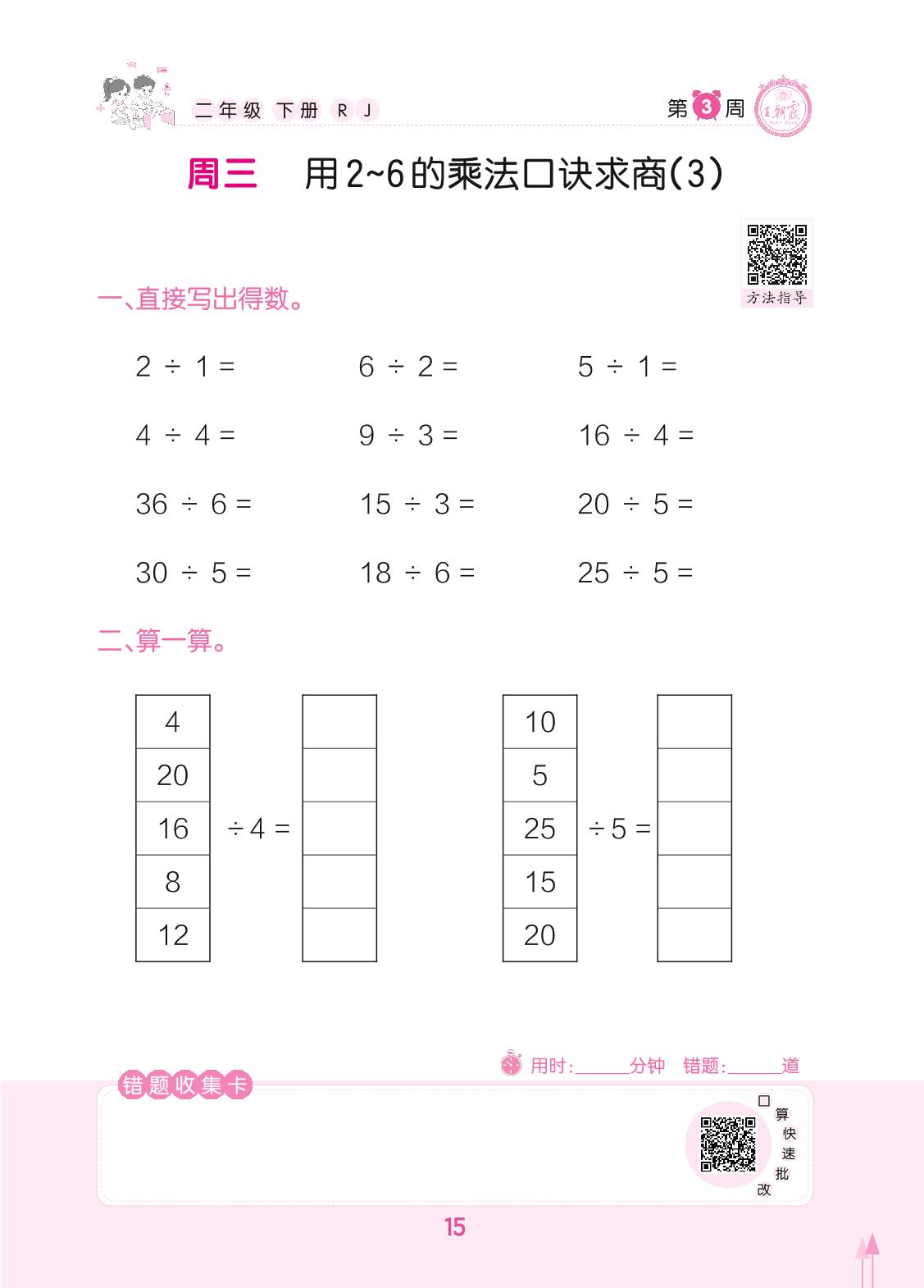 2022下册二年级数学人教版 第3周 周三