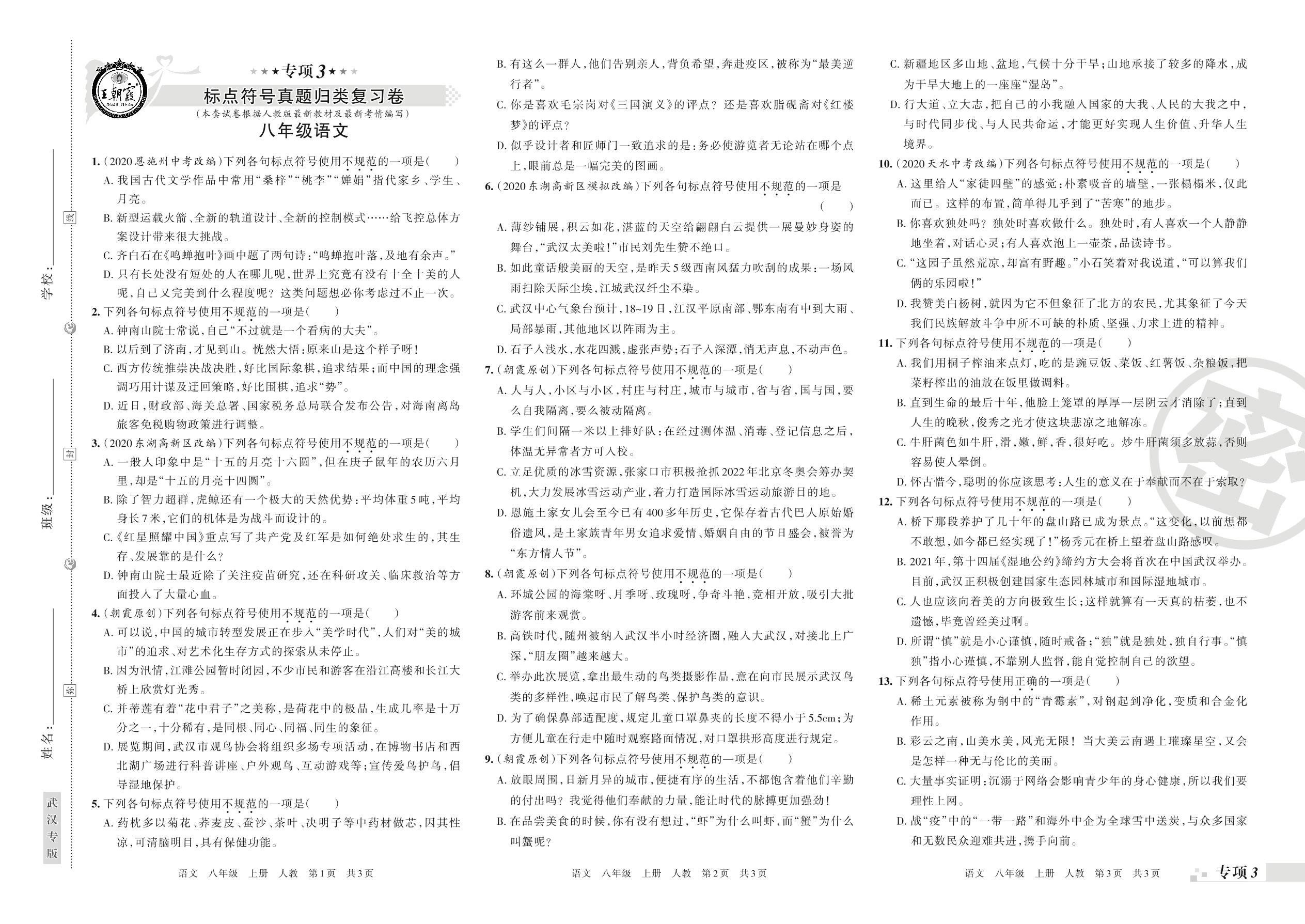 王朝霞期末专项卷——标点符号、综合性学习与口语交际真题归类复习八年级上册语文(人教版)【0】