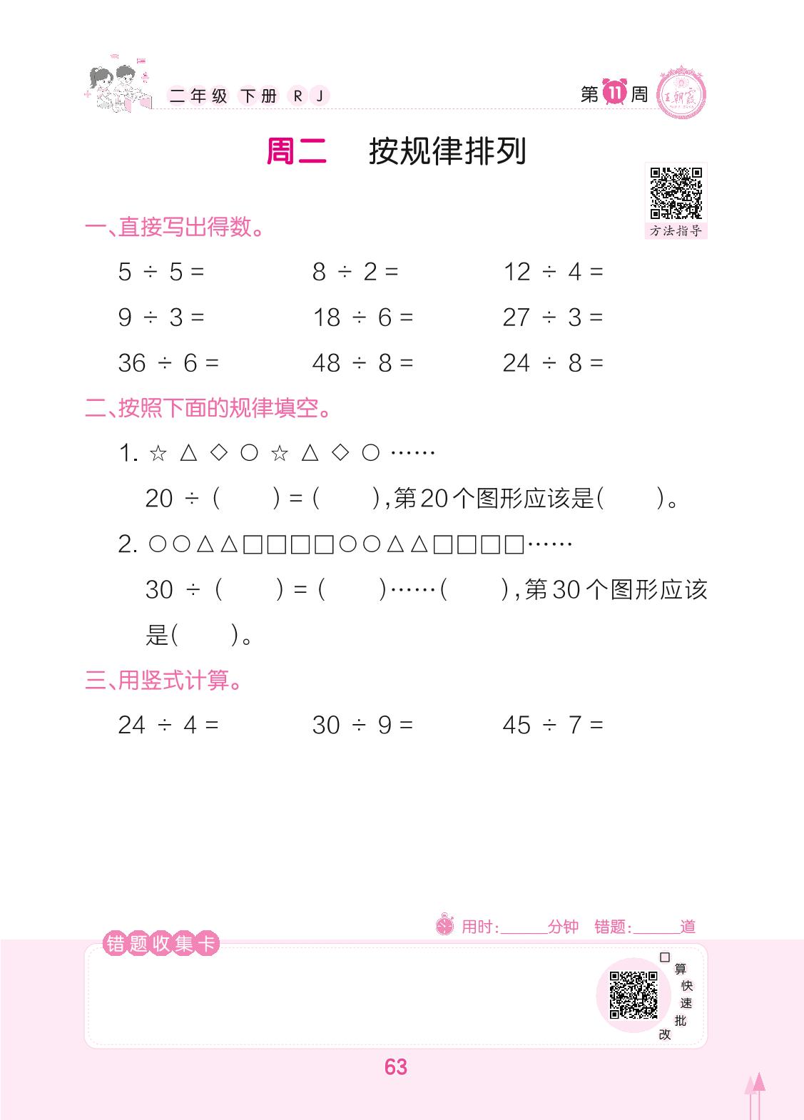 2022下册二年级数学人教版 第11周 周二