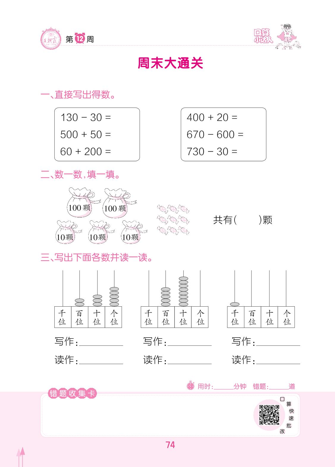 2022下册二年级数学人教版 第12周 周末大通关