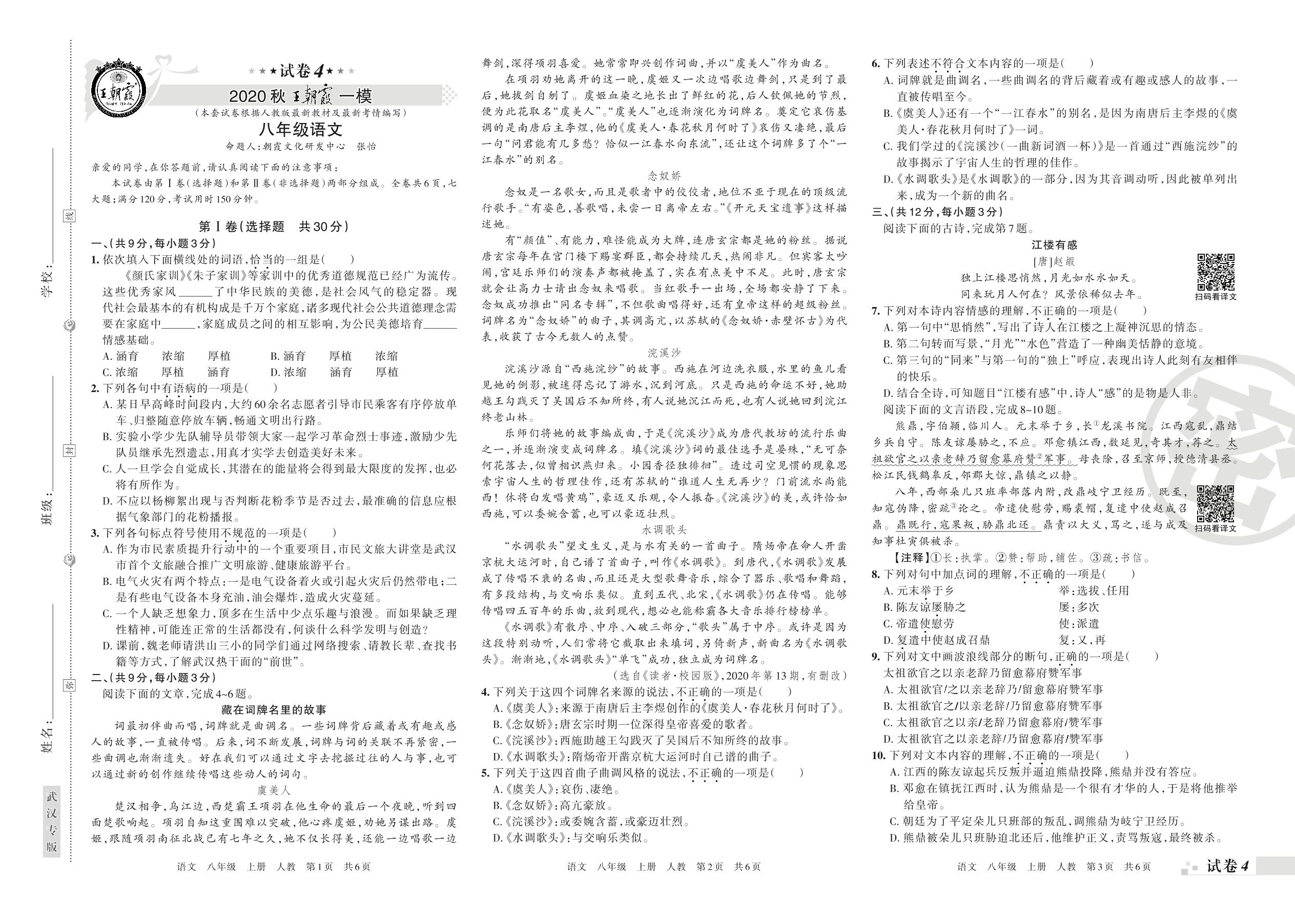 王朝霞期末模拟卷八年级上册语文(人教版)【4】