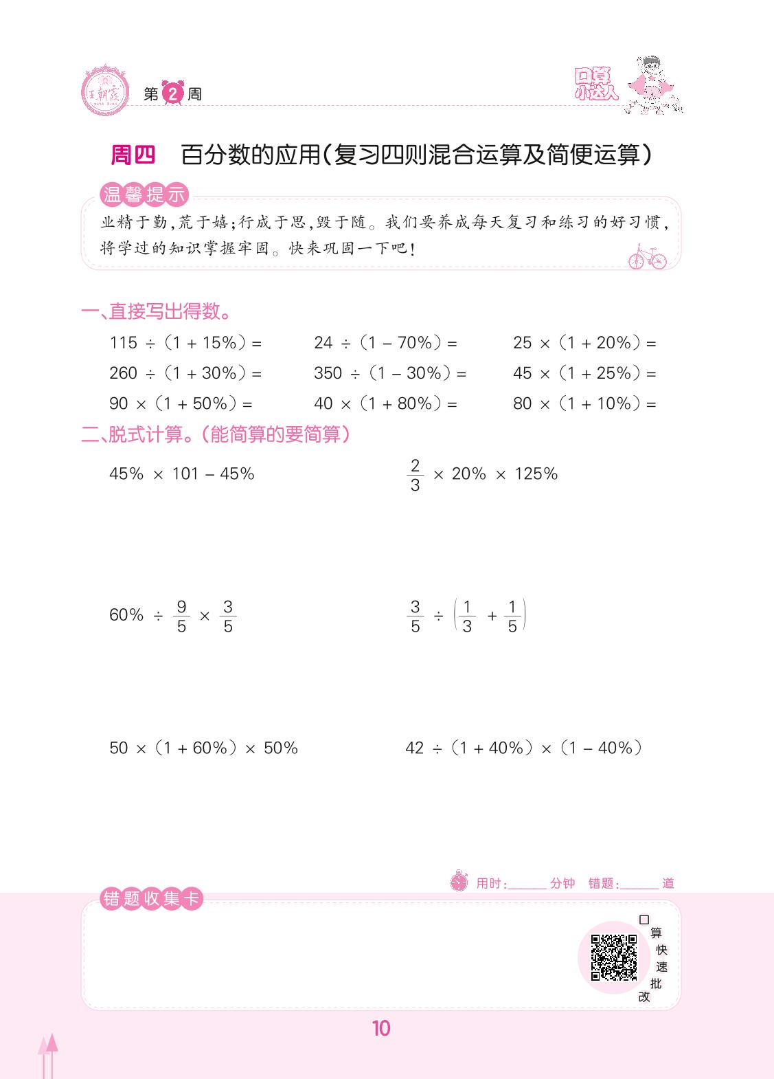 2022下册六年级数学人教版 第2周 周四